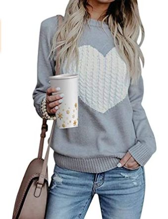 Se trata de un jersey para mujer muy bonito que tiene un diseño de corazón, y que es de manga larga con un cuello redondo. Viene con un ajuste holgado, lo que permite aportar una gran comodidad a la hora de utilizarlo. Está fabricado en un tejido acrílico que es duradero, al mismo tiempo que es muy suave con la piel, y es completamente atemporal.