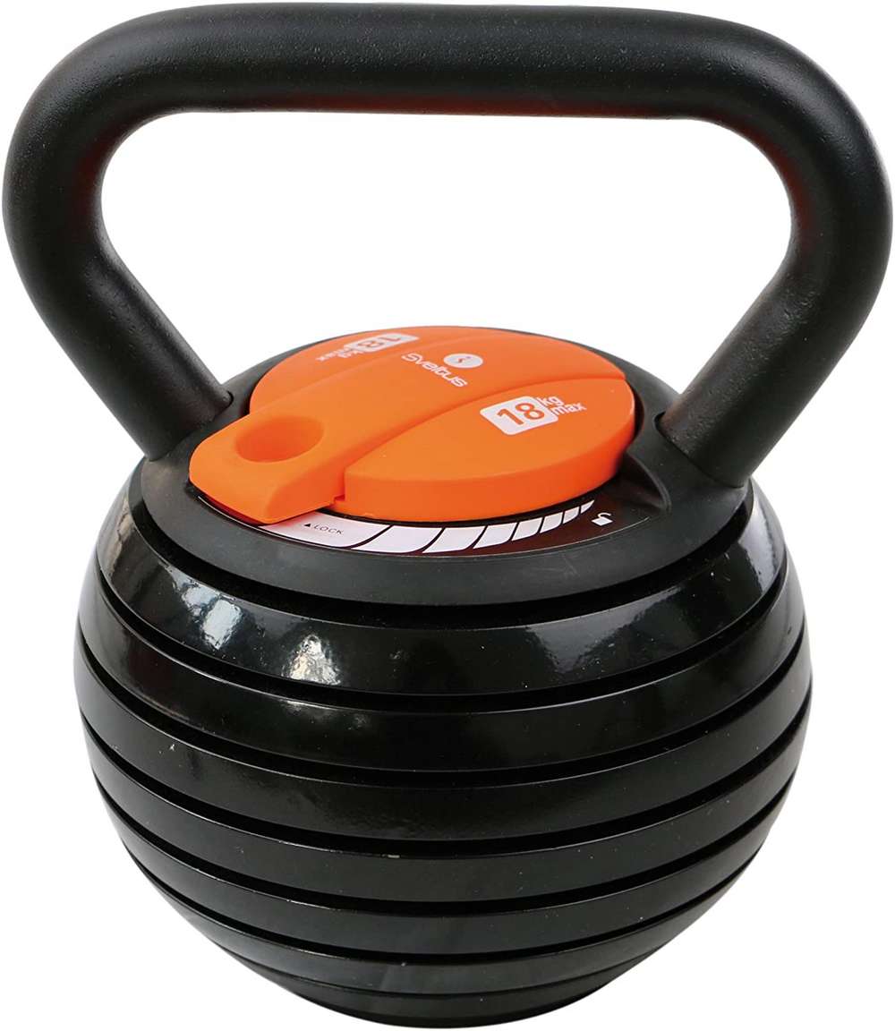 Se trata de una pesa rusa ajustable, que puedes graduar desde los 2,5KG hasta los 18KG, y que está fabricada en hierro fundido de alta calidad. Las placas de la misma están diseñadas para una fijación rápida, y con una gran seguridad. Ofrece una gran estabilidad y un gran control de todos los movimientos, lo que facilitaré en gran medida el uso.