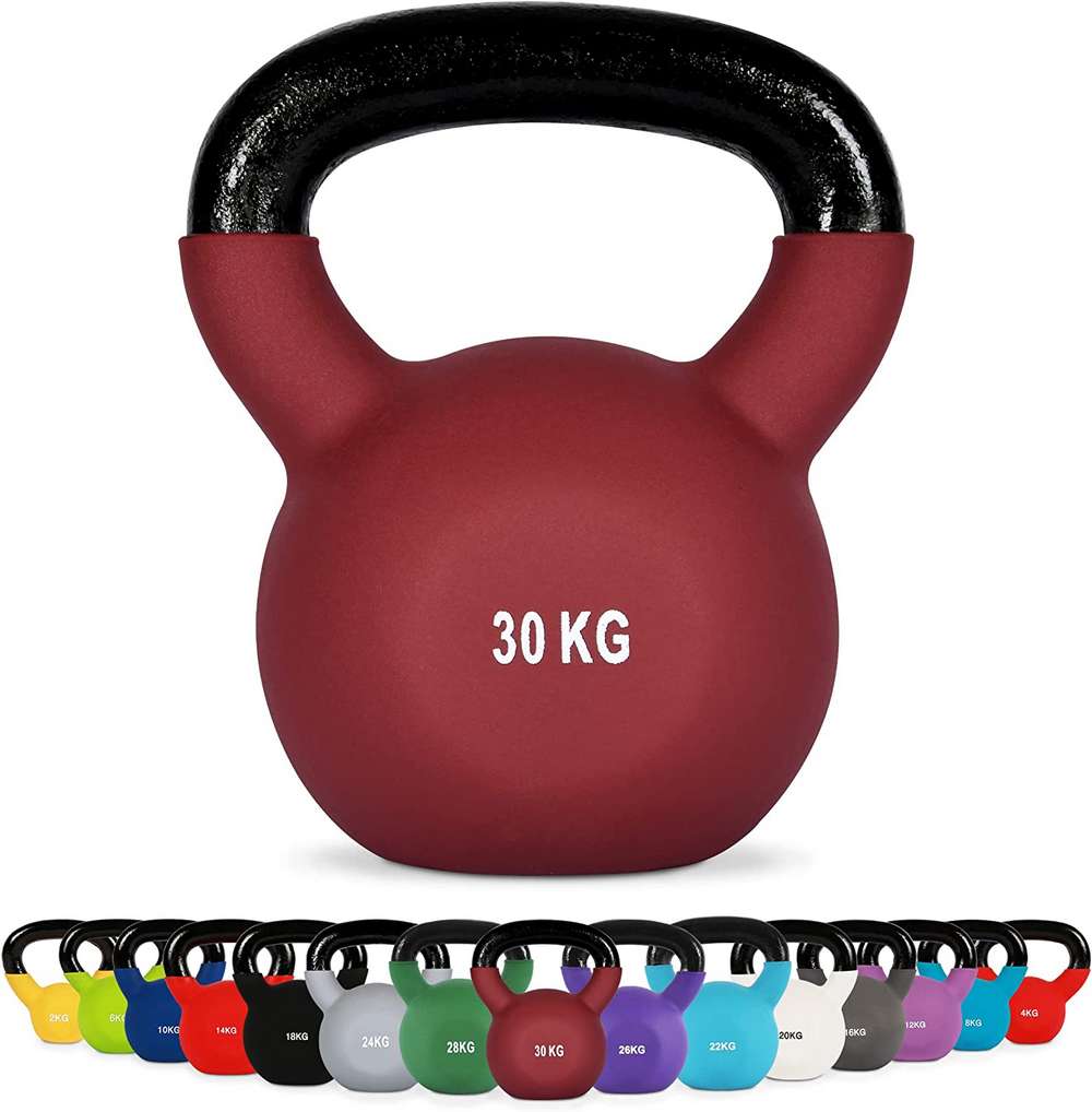 Se trata de un modelo que tiene una gran calidad, y que está disponible en diferentes tamaños para que escojas el que mejor se adapte a tus necesidades. Puedes encontrar desde 2KG hasta 28KG, para que selecciones la que mejor se ajuste a tu nivel de entrenamiento. Tienen un recubrimiento de neopreno que envuelve un núcleo de hierro fundido resistente que permite proteger los pisos y reducir el ruido de impacto, siendo muy duraderos.