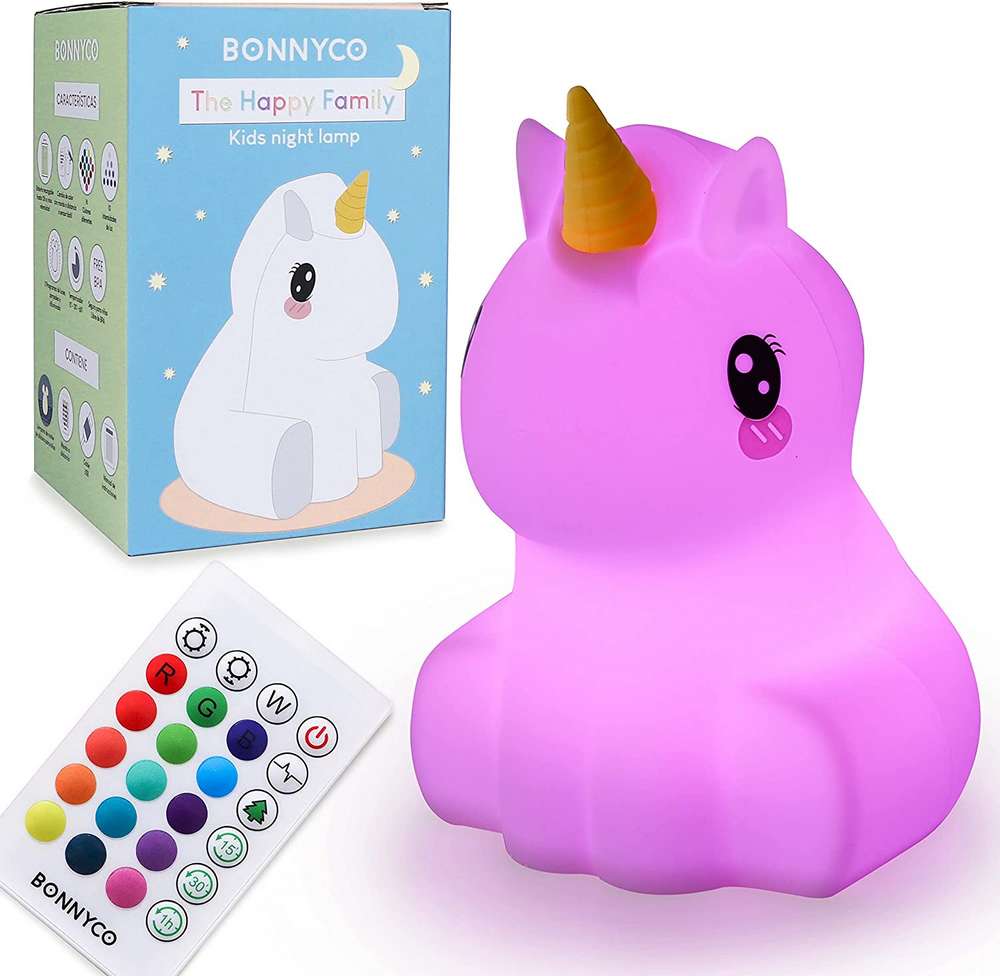 Esta es una lámpara quitamiedos infantil que tiene una forma de unicornio que es recargable y que viene con 10 intensidades de brillo. Es una luz ideal para la decoración de la habitación infantil, y que proporciona una buena iluminación. Es una luz de bebe nocturna con un temporizador que se puede programar para un apagado automático a los 15, 30 o 60 minutos, sin que te moleste. Esta lampara viene con un cable USB para recargarla fácilmente.