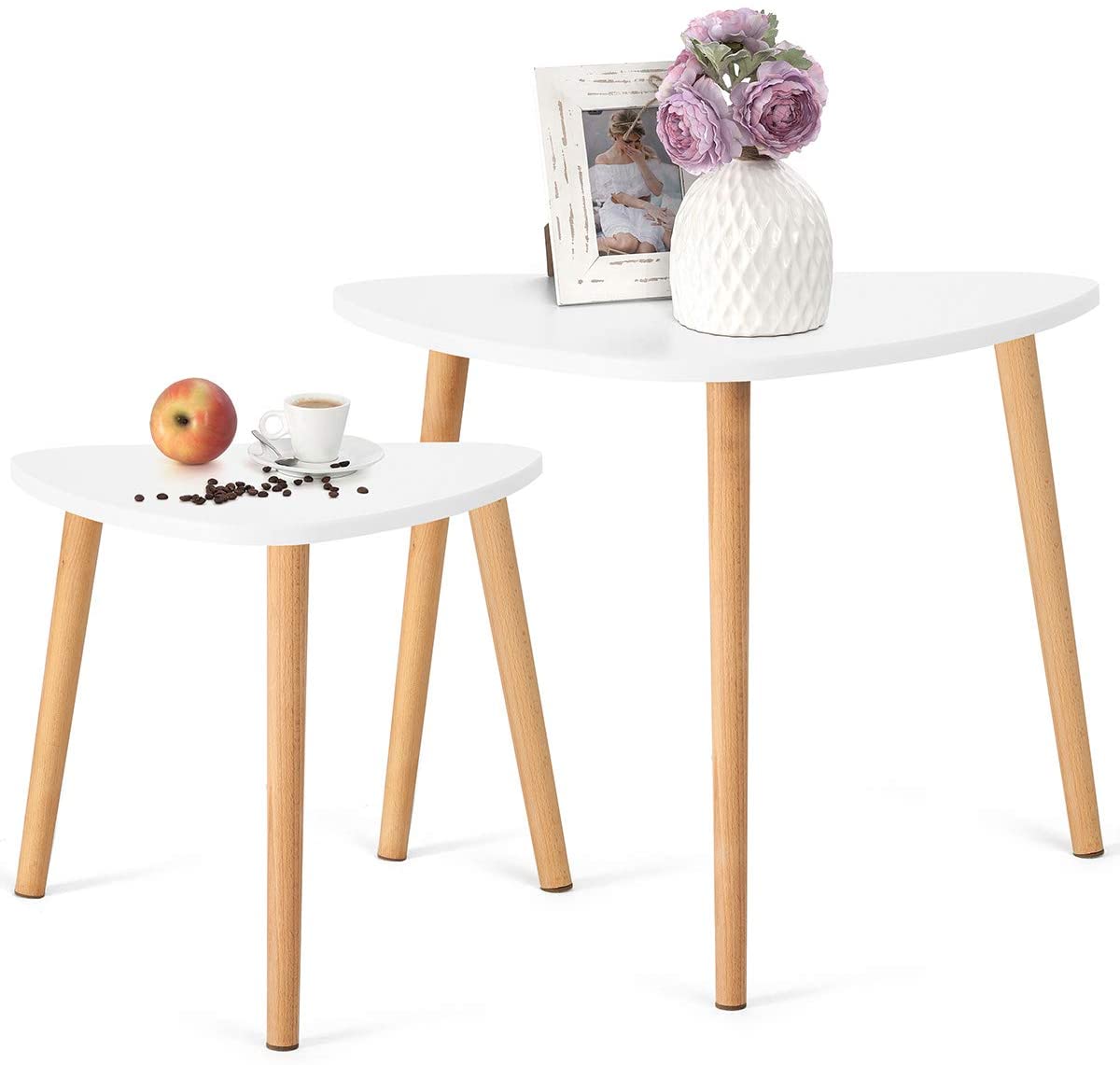 Se trata de una gran opción a tener en cuenta, en especial porque se trata de una combinación perfecta de patas de madera con un tablero lacado en color blanco. Es un set de 2 mesas que se destacan por tener un diseño minimalista que te permitirá tener un acabado completamente elegante. Las mesas se pueden apilar una debajo de la otra, lo que permitirá que puedas ahorrar espacio cuando no las estés utilizando. Podrás darles a tus estancias un toque nórdico único que te permitirá disfrutar de un espacio fantástico.