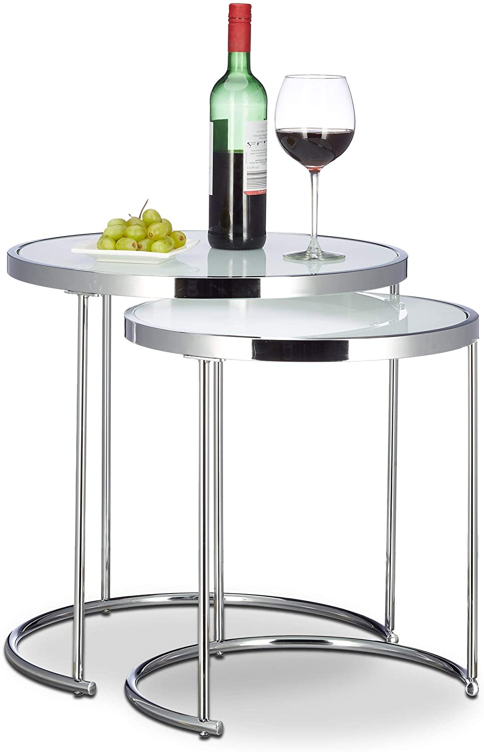 Cuentan con un diseño bastante estable, y con unas patas semicirculares que permitirá que puedan mantenerse en pie sin problemas. La mesa pequeña puede guardarse debajo de la grande cuando no la estás utilizando con la finalidad de ahorrar espacio. Estas mesas se adaptan a la perfección a todos tus espacios, y al mismo tiempo sirven muy bien como elementos decorativos para tu hogar. Con sus acabados cromados no cabe la menor duda de que tendrás un elemento decorativo fantástico en tu hogar.