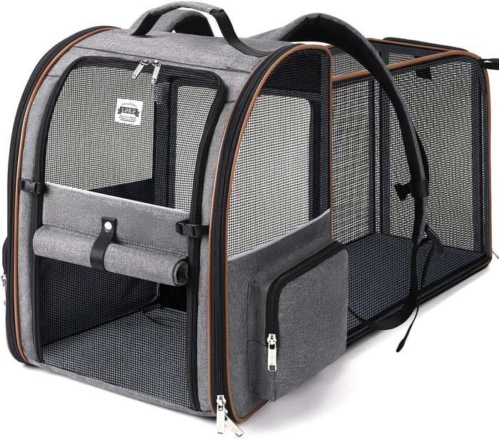 Cuenta con un sistema de expansión en la parte trasera, lo que permite crear un espacio adicional para tu mascota. Cuando no está en uso se puede plegar fácilmente y de esta forma ocupará menos espacio de almacenamiento. Es ideal para mascotas entre las 10 y las 12 libras de peso como máximo, y se encuentra disponible en diferentes colores para que puedas seleccionar el que más te guste.