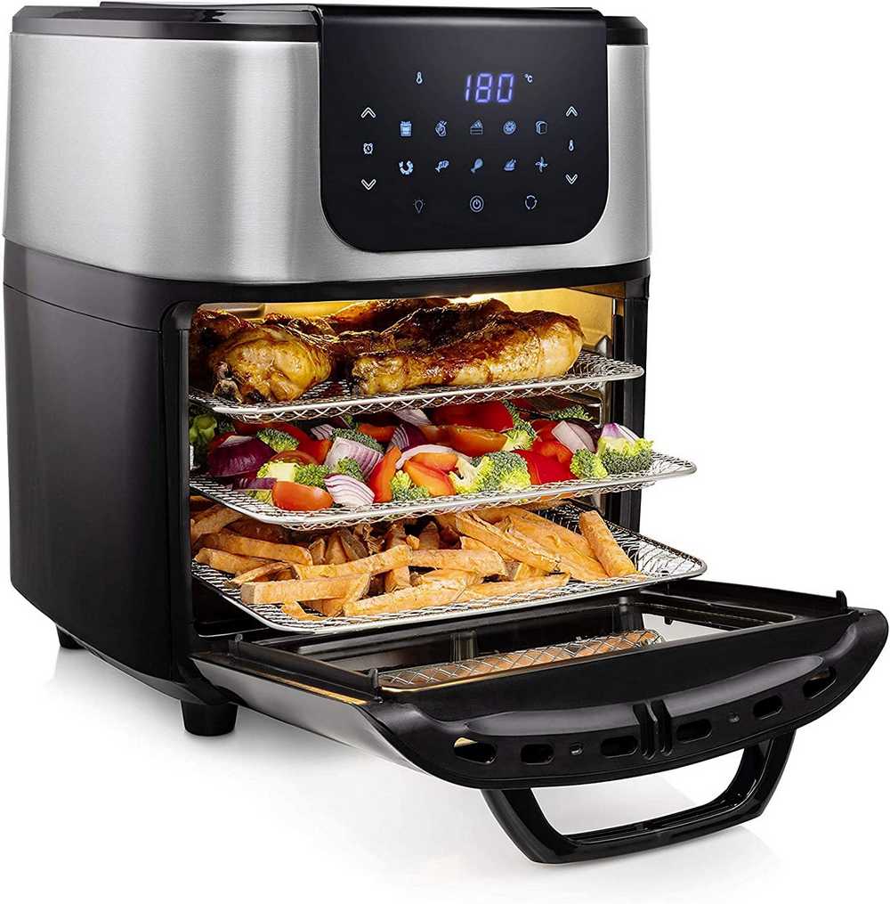 Viene con un total de 10 ajustes preprogramados o también se puede manejar de forma manual para tus preparaciones. La temperatura es ajustable entre los 80 y los 200°C, y ofrecen una potencia total de 1800W para que tengas una cocción rápida. Tiene una capacidad total de 11L.