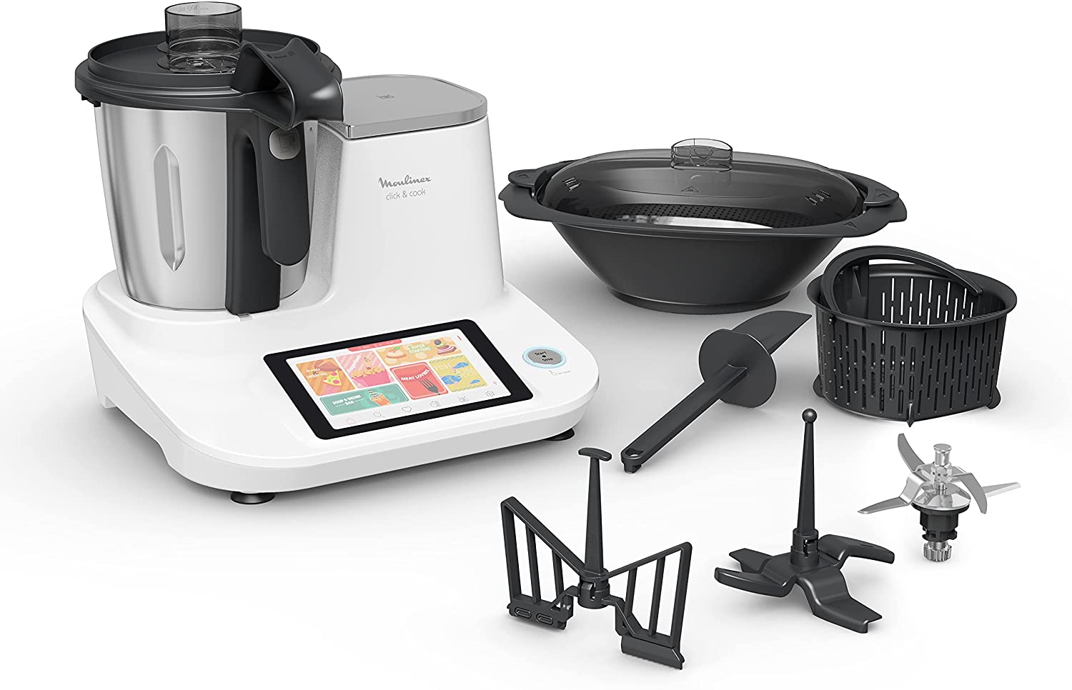 Viene con un total de 7 accesorios diferentes que son muy prácticos y versátiles. Se incluye una vaporera externa de gran capacidad lo que te permite cocinar de una forma más sana. La capacidad total es de 3.6L que permite cocinar para hasta 4 personas, y viene con 600 recetas incluidas.