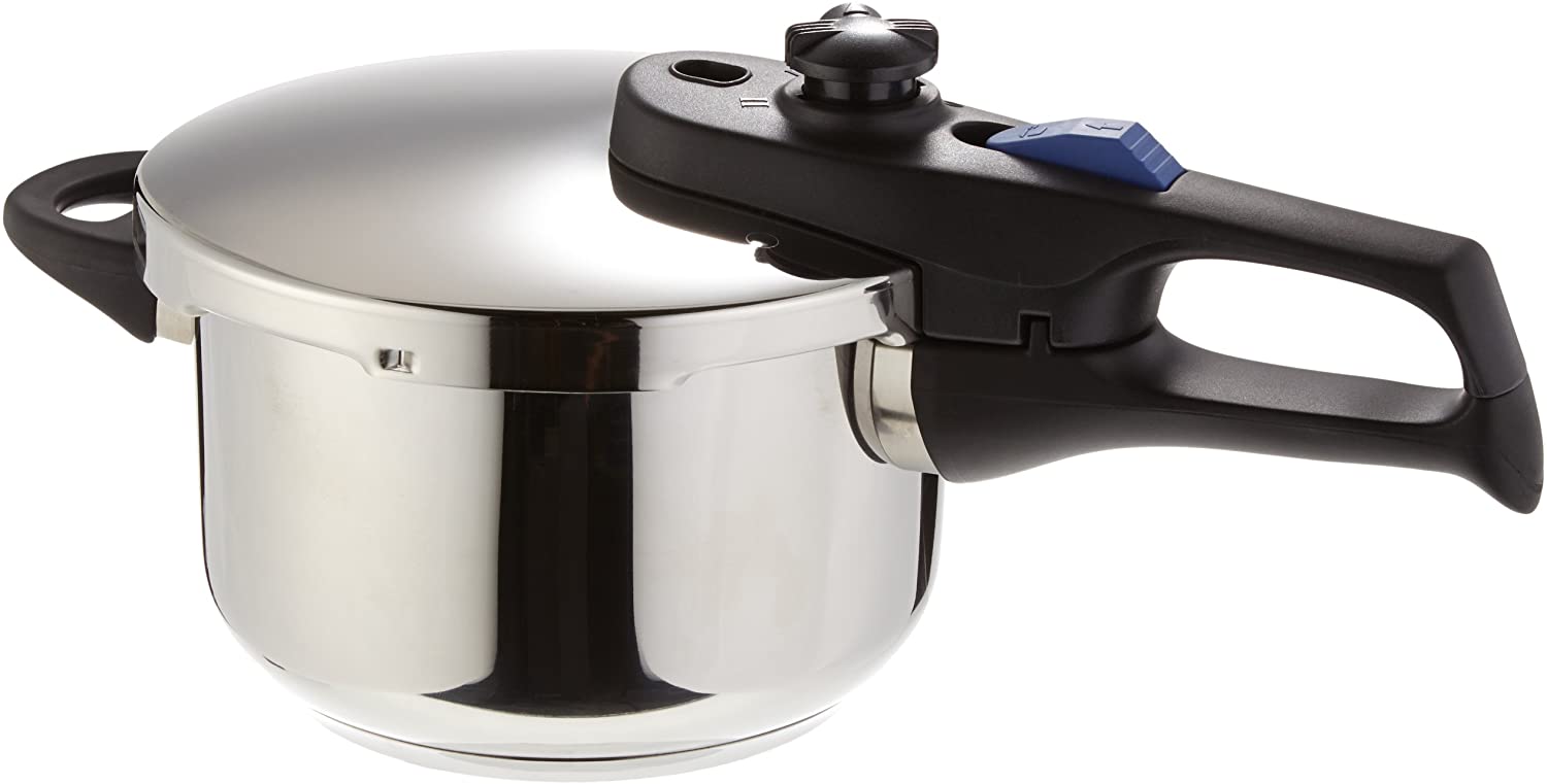 Si buscas una olla rápida de alto rendimiento para 2 personas, esta es una gran opción que puedes tener en consideración. Está fabricada por completo en acero inoxidable 18/10, con una válvula de alivio de presión en el borde de la tapa. Ofrece una base de difusión del calor, que permite el máximo aprovechamiento de la energía para que puedas conseguir un gran rendimiento.