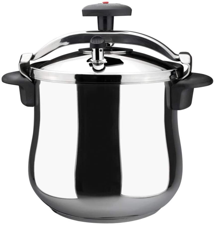 Tiene un diámetro de 24cm, para una gran comodidad, y no se recomienda llenarla por encima de ¾ partes de su capacidad. Su mango ergonómico permite que puedas moverla fácilmente y de forma segura sin ningún tipo de accidente. Ofrece 3 mecanismos de seguridad, con una válvula giratoria tradicional, una válvula depresora y una barra de cierre de seguridad. Además, puedes encontrarla en diferentes capacidades desde los 4 hasta los 14 litros.