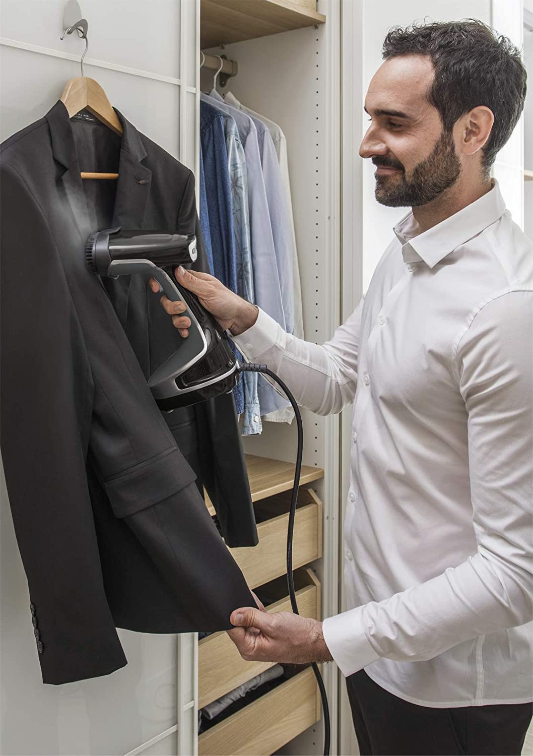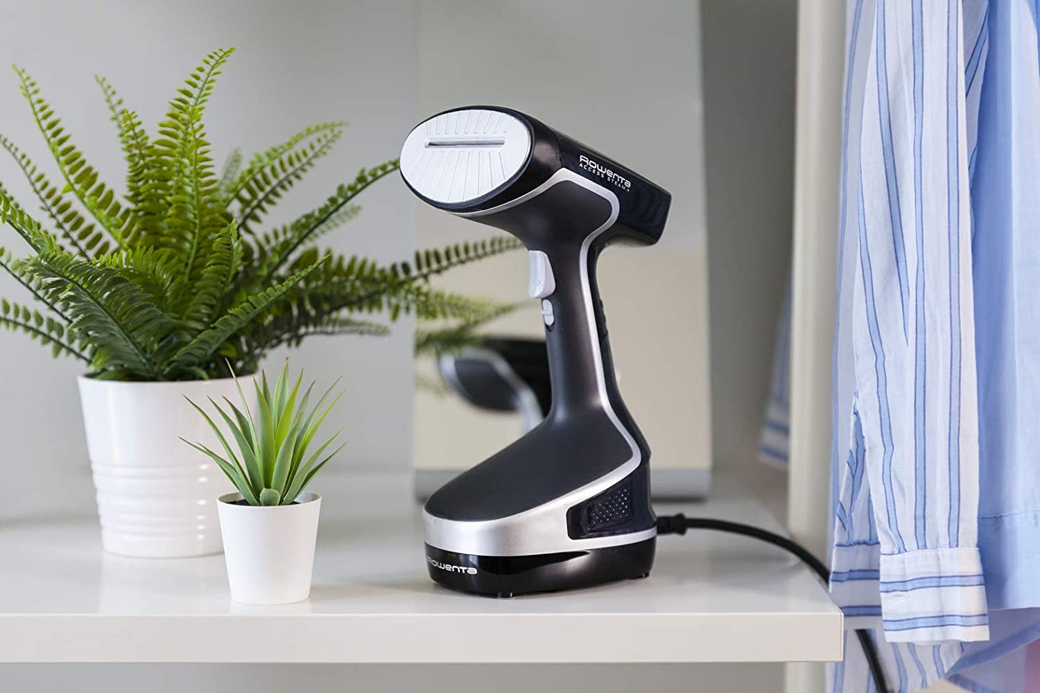 La plancha de Rowenta tiene un cable de alimentación de energía que mide 3 metros; el cual permite diversos movimientos y gran libertad para ejecutar la tarea. No solo es bueno para planchar distintos tipos de ropa, sino que también es ideal para arreglos de última hora. El set completo incluye un cepillo para tejidos gruesos, accesorios para telas delicadas, un gancho de puerta, pinza para hacer las rayas en los pantalones y una bolsa de guardado.
