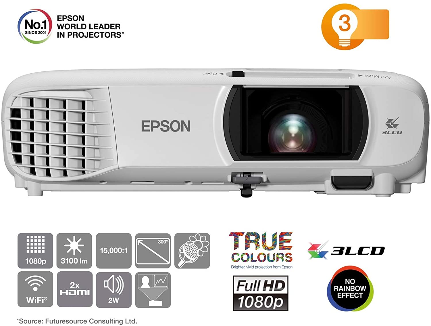 Tiene wifi incorporado para que sea mucho más versátil y cuenta con dos entradas HDMI, para que puedas conectar hasta dos aparatos con la función de dividir pantalla. Tiene una luminosidad de 3.100 lúmenes, para que sea perfecta incluso durante el día, con la tecnología 3LCD. Este modelo se destaca por no tener el efecto arcoíris que puede ser muy molesto, gracias a que su tecnología evita este problema que es tan común con los proyectores LED.
