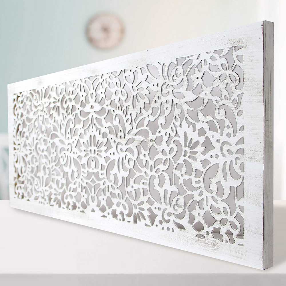Está completamente decorado a mano de forma artesanal, lo que ofrece un acabado único en cada uno de los cuadros, lo que permitirá que se pueda tener un mosaico sin igual. Este cuadro se fabrica en España, y tiene un tono blanco envejecido que sin duda combinará a la perfección con cualquier tipo de decoración en cualquiera de los espacios donde se instale. También está disponible en color nogal, y lo podrás encontrar en tres medidas diferentes.