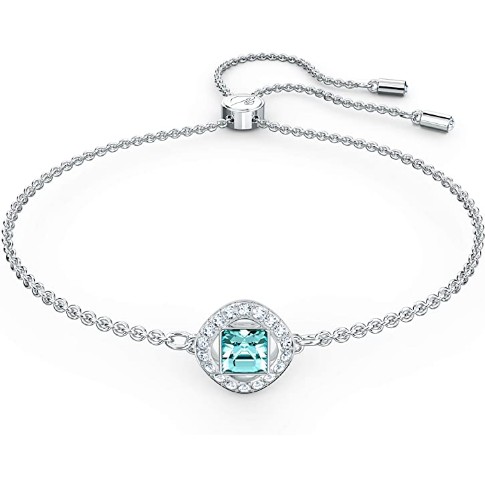 Se trata de una pulsera de Swarovski que quedará muy delicada en la muñeca, lo que hace que sea ideal para un regalo especial. Viene con una delicada cadena bañada en rodio, en la cual va con un elemento donde se contiene un cristal de Swarovski cuadrado de color azul turquesa, que sin duda le aportará un toque realmente único y muy femenino.