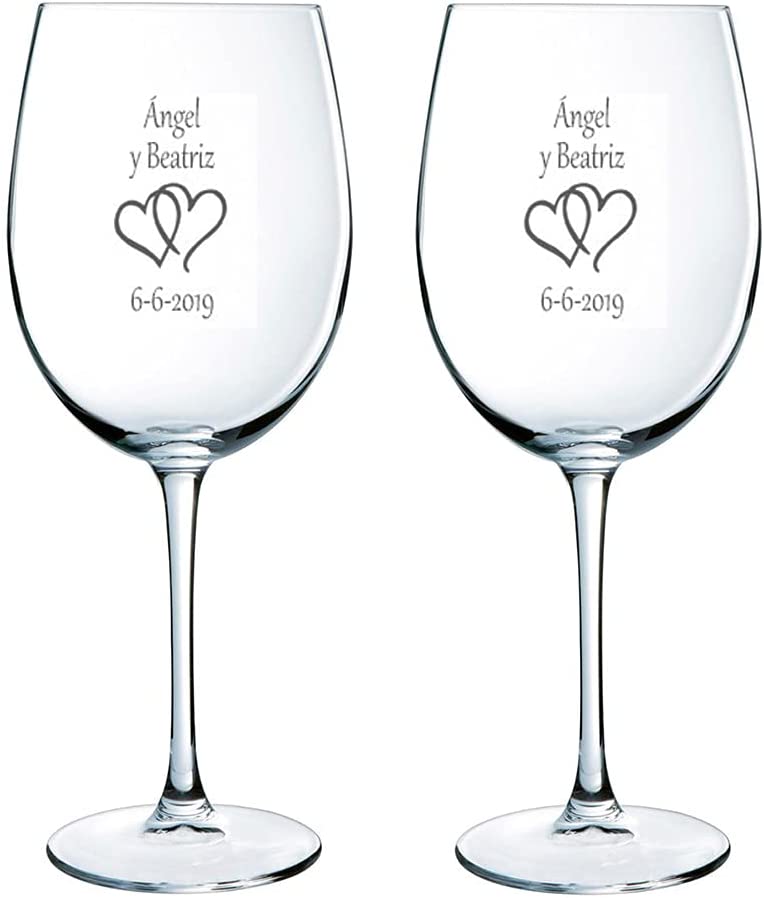Este es un regalo muy bonito que puedes hacer a una pareja en el día de San Valentín, o que puedes comprar junto con tu pareja para celebrar su amor. Recibirás dos copas de vino personalizadas con los nombres de la pareja, fechas y motivo que prefieran, consiguiendo así tener unas copas hechas a la medida y a su gusto.