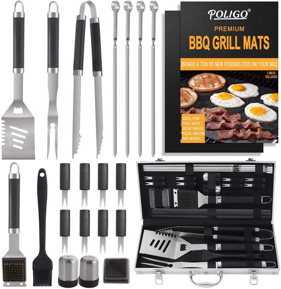Este es un set muy completo de utensilios de barbacoa que incluye todo lo que se necesita para preparar una barbacoa espectacular. Son unas herramientas fabricadas en acero inoxidable de calidad profesional, lo que hará que este set de barbacoa sea muy duradero. Además, es fácil de limpiar y completamente apto para el lavavajillas.