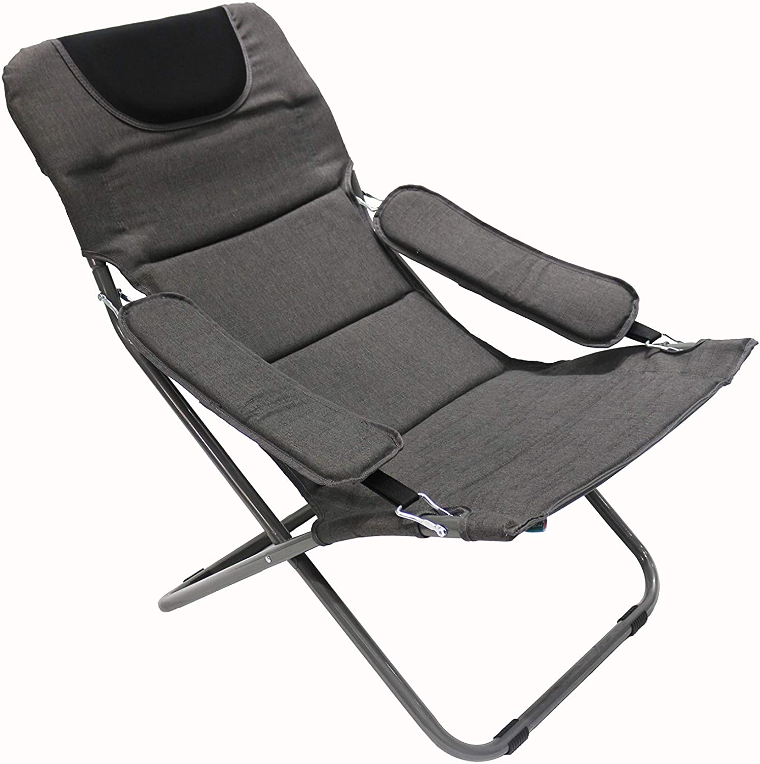Se trata de una silla de alta calidad que cuenta con un marco en acero, y que es totalmente plegable lo que permite tener la máxima comodidad. Su tela es muy duradera, lo que hace que la silla sea bastante resistente a la hora de sentarse. Soporta un máximo de 136KG de peso, y pesa tan solo 3,9KG, lo que permite que sea muy fácil de llevar a cualquier parte a la hora de hacer camping.
