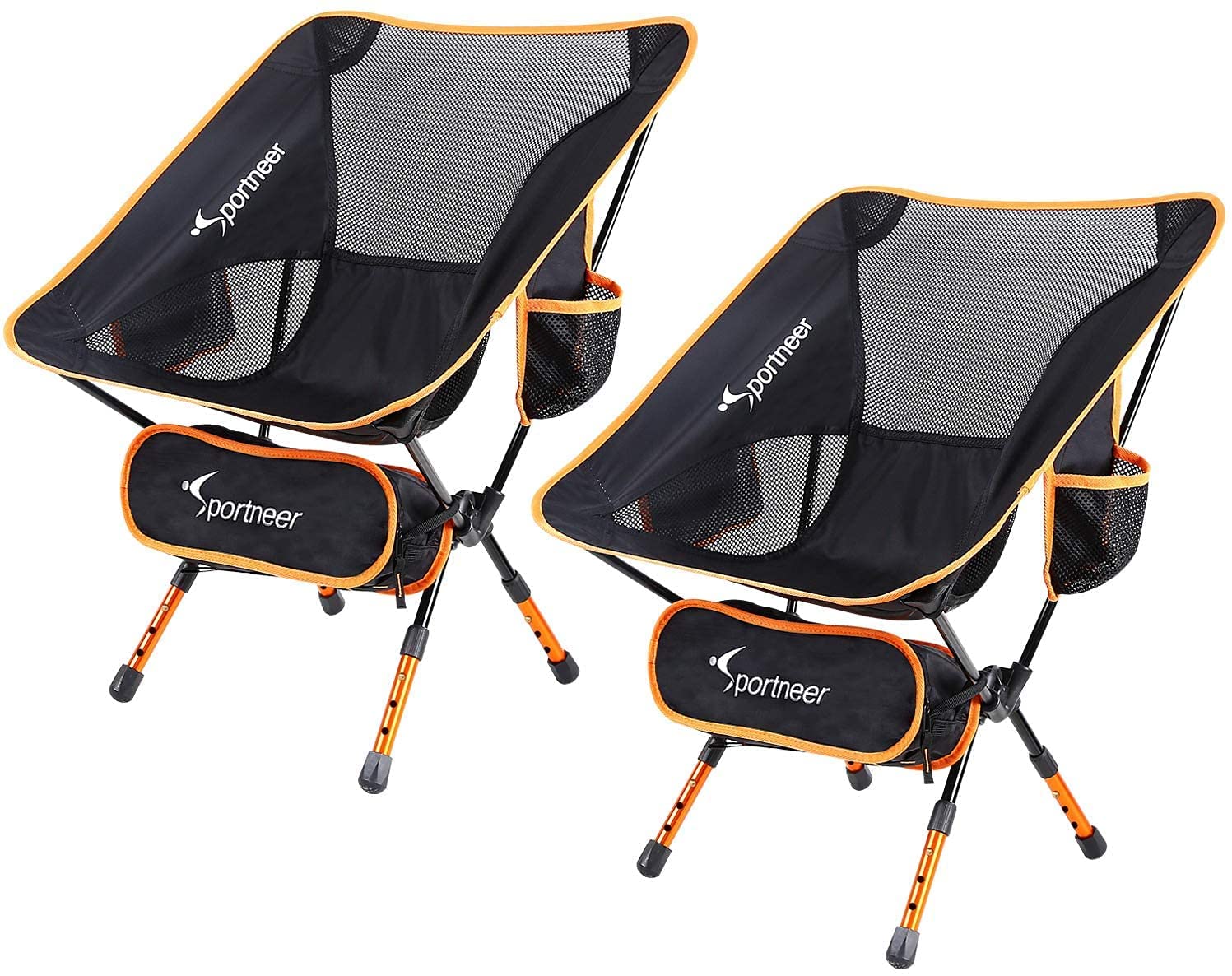 Son unas sillas plegables muy prácticas cuando no tienes mucho espacio para llevarlas, puesto que se pueden plegar en un tamaño muy compacto. Están diseñadas para soportar un peso de hasta 158KG, y están fabricadas en tela Oxford altamente resistente. Su marco de aluminio de calidad aeroespacial te permitirá asegurar la durabilidad de la silla y tendrá una gran resistencia.