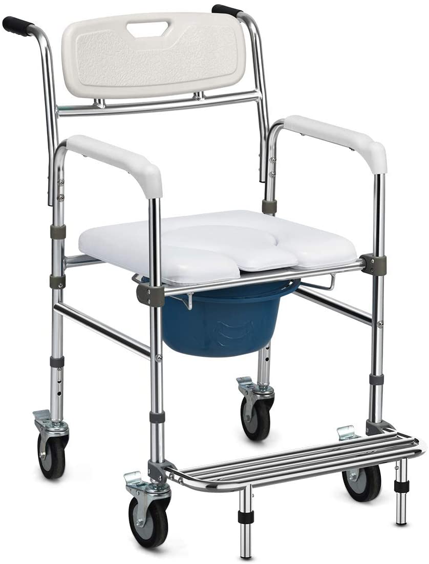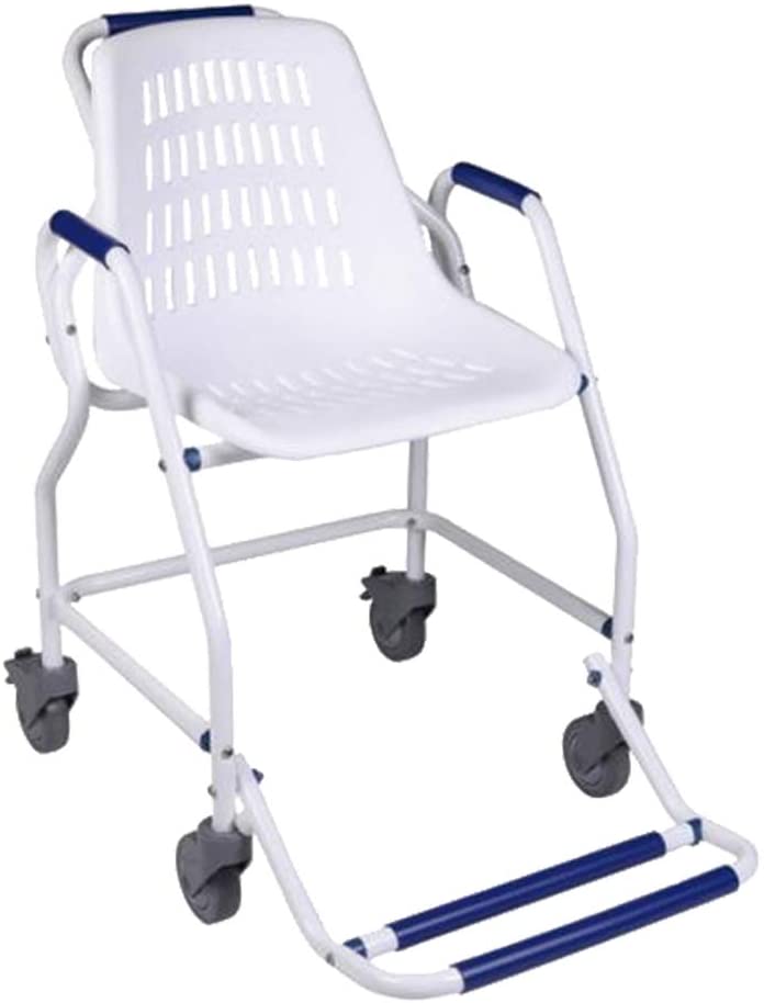 Se trata de una silla que cuenta con ruedas y que es muy funcional par todas las necesidades de los adultos mayores o personas con movilidad reducida. Esta silla es ideal para que te puedas duchar de una forma realmente sencilla y efectiva, garantizando así que tendrás la máxima comodidad posible. Se puede ajustar la altura de la silla, y cuenta con reposapiés para brindar una mayor comodidad, y este último se puede plegar de una forma muy cómoda.