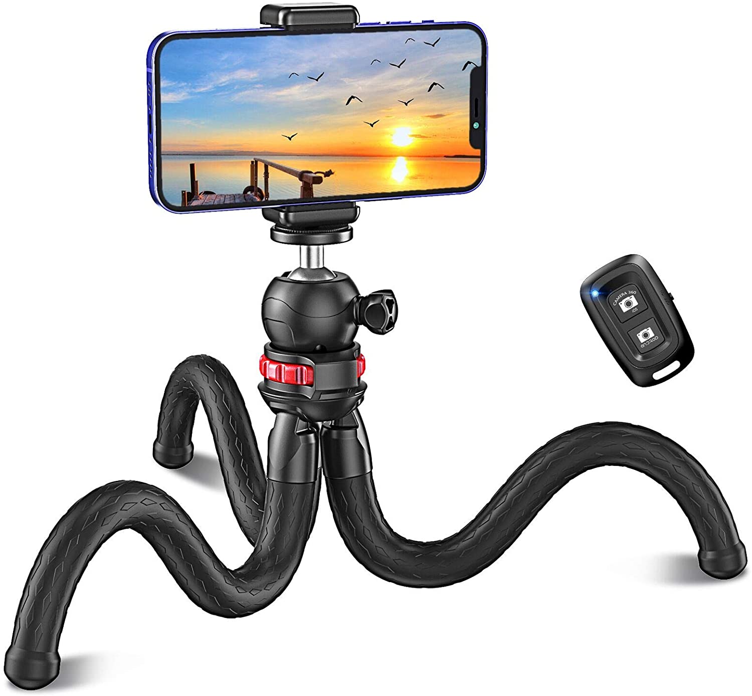 Su diseño de las patas es de tipo octopus, lo que hace que se pueda torcer fácilmente y adaptarlo a cualquier superficie. Es compatible con la mayoría de teléfonos inteligentes, así como con cámaras digitales y GoPro. Tiene un control remoto para su modo selfie, lo que permitirá que puedas tomar fotos a distancia sin ningún tipo de inconveniente.
