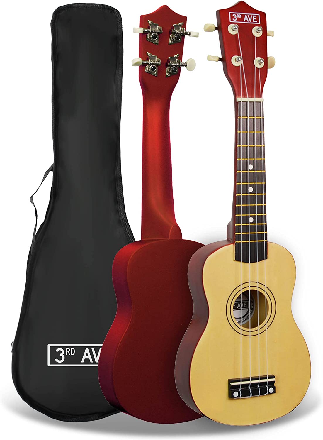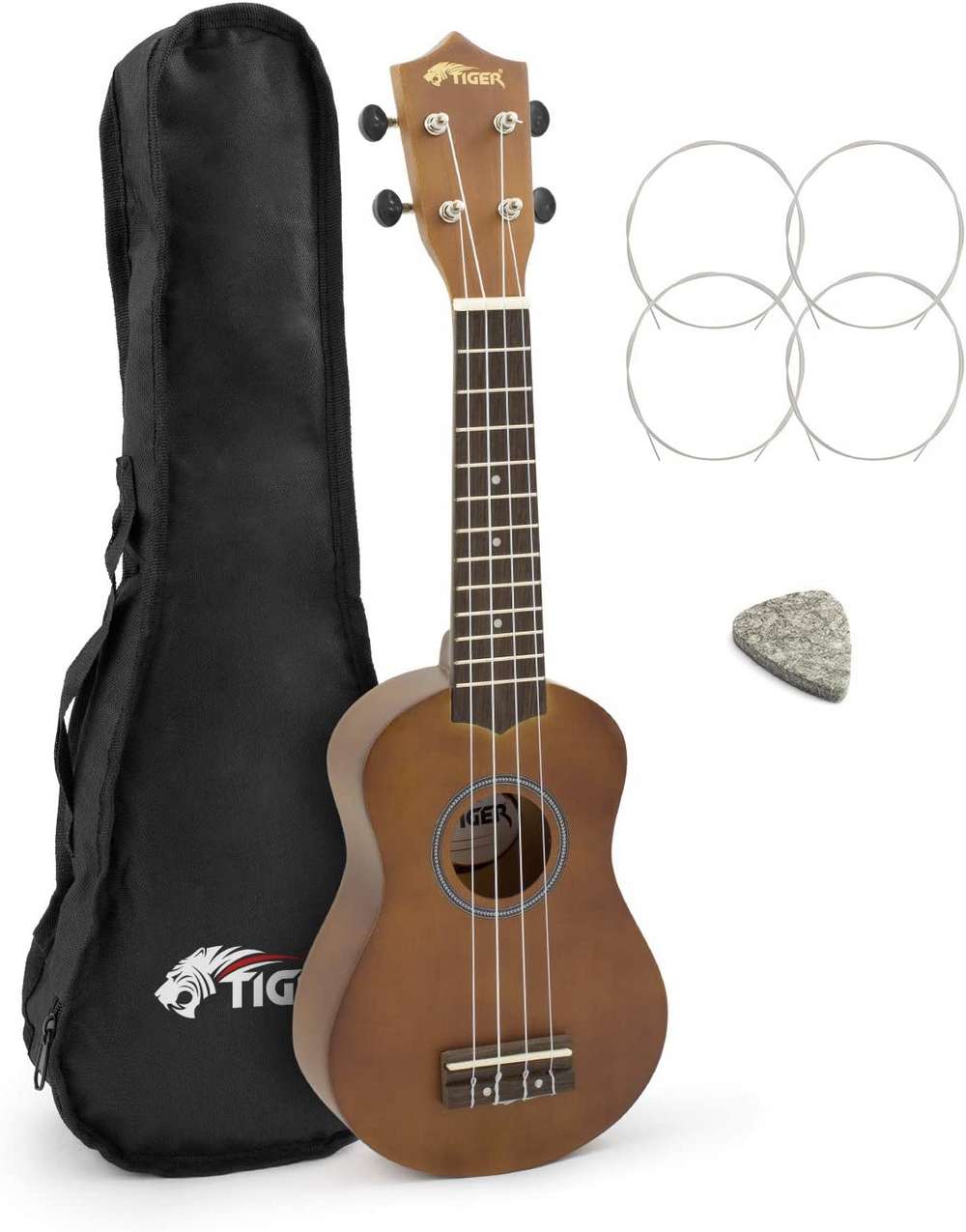 Se trata de un ukelele para principiantes que se destaca por tener una excelente relación calidad-precio. Es de 21 pulgadas, y viene con su funda de transporte para llevarlo a cualquier parte de una forma muy cómoda y sin que se estropee. Está fabricado a mano con álamo laminado, lo que permite que produzca unos tonos que son vibrantes y que harán que tu música se destaque. Viene con cuerdas de nailon suave que no hacen daño a los dedos.