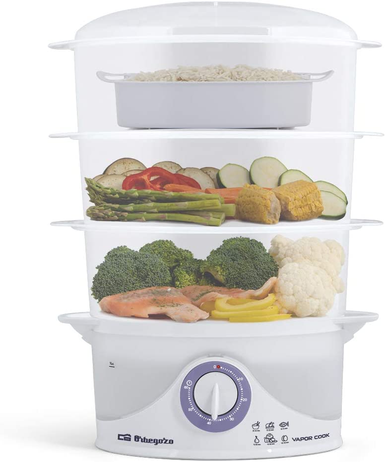 Se trata de un modelo de vaporera que te permite cocinar de una forma completamente eficiente y totalmente sana. Es una vaporera con compartimentos de plástico completamente libres de BPA, permitiendo cocinar los alimentos manteniendo todos los nutrientes y vitaminas. Tiene un sistema de protección contra el sobrecalentamiento, y en caso de no tener agua se apagará por sí solo.