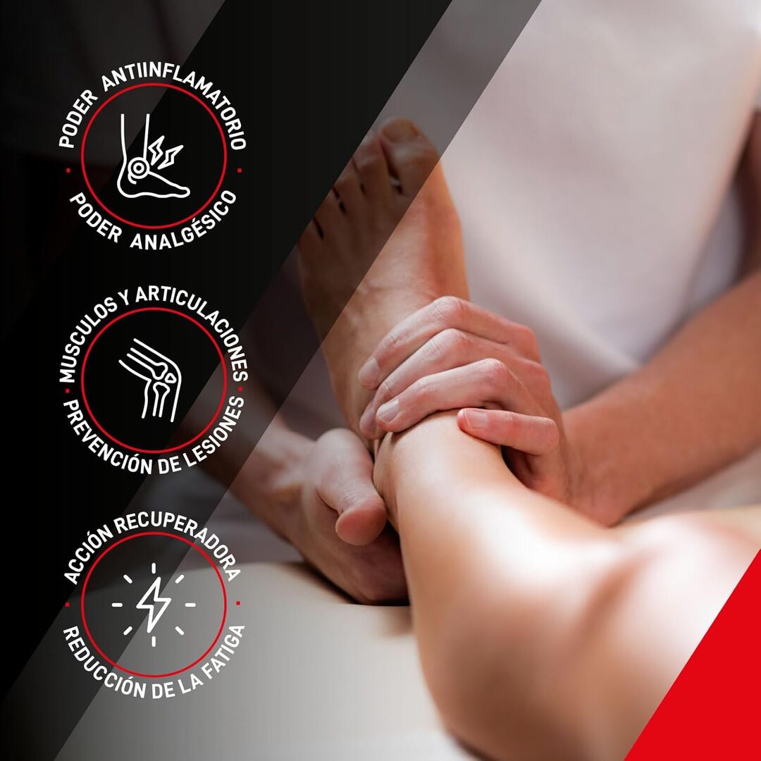 Rápida Absorción y Textura Ligera: Su fórmula se absorbe rápidamente sin dejar residuos grasos, lo que la convierte en la crema perfecta para masajes terapéuticos y para aliviar el dolor muscular y articular de forma rápida y efectiva.