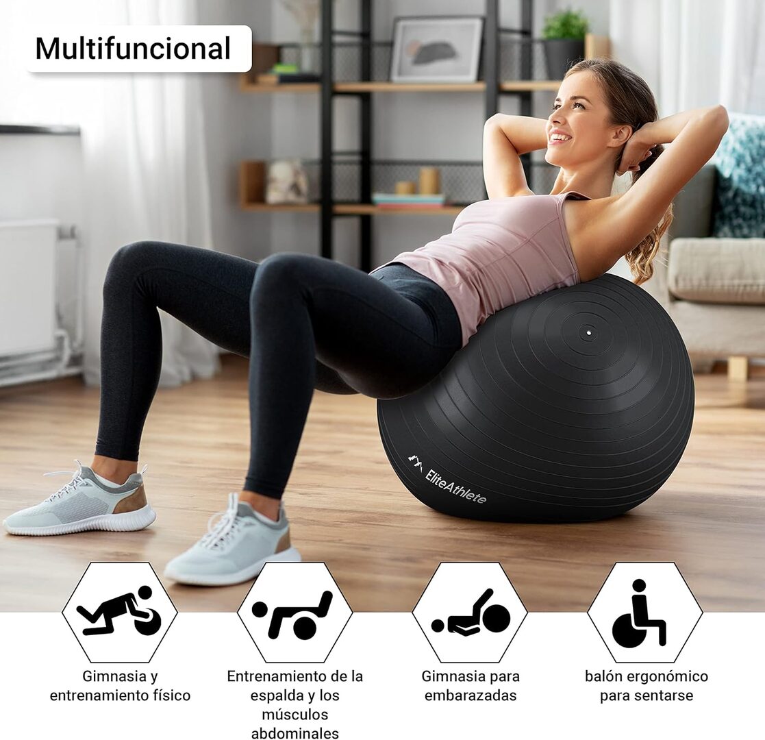 - Para pilates o entrenamiento funcional: Una pelota de mayor resistencia y diámetro ofrece mejor soporte.