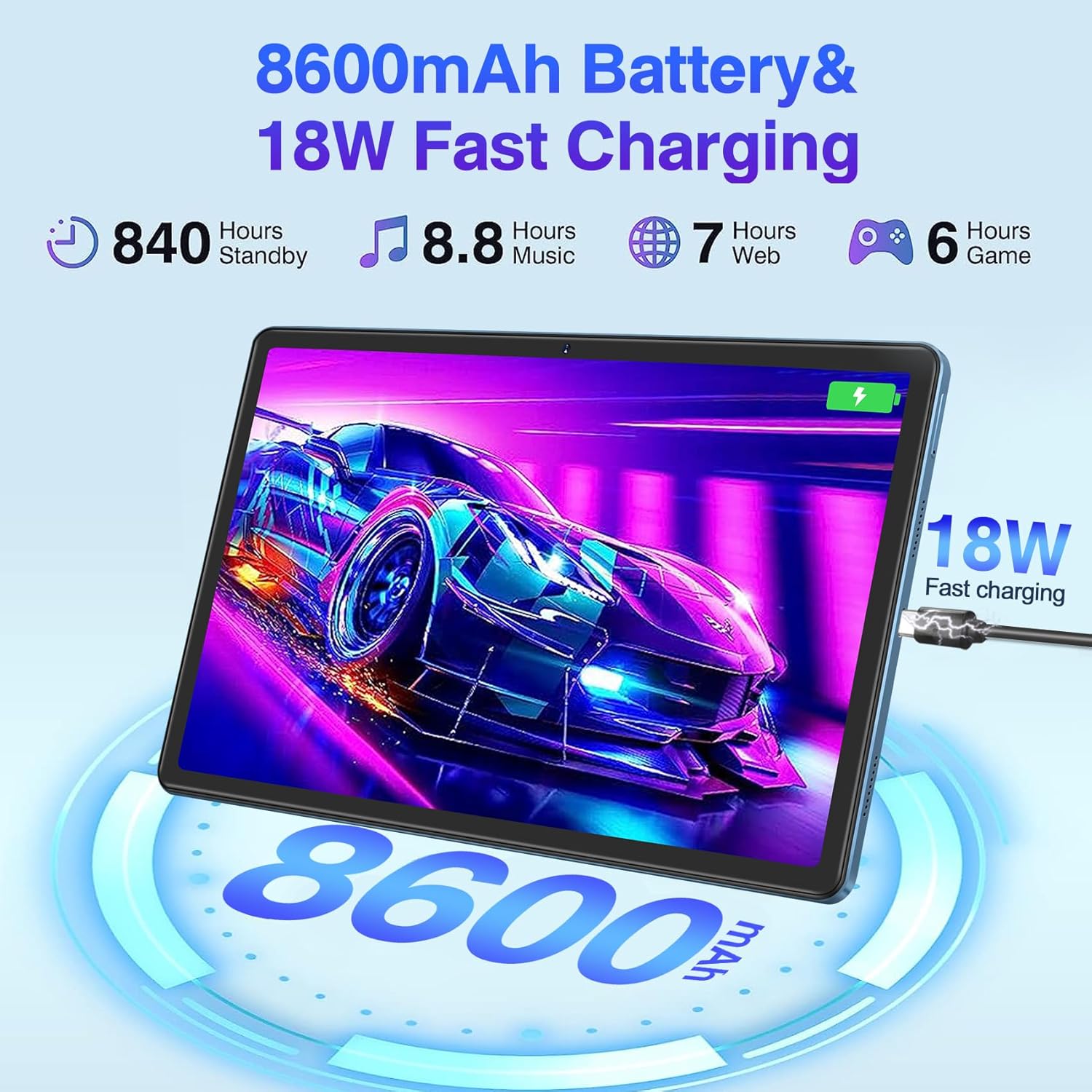 La batería de 8600 mAh garantiza una larga duración, permitiéndote disfrutar de tus contenidos favoritos o trabajar durante largas horas sin preocuparte por quedarte sin batería. Además, con la carga rápida de 18W, puedes recargar la tablet rápidamente cuando lo necesites.
