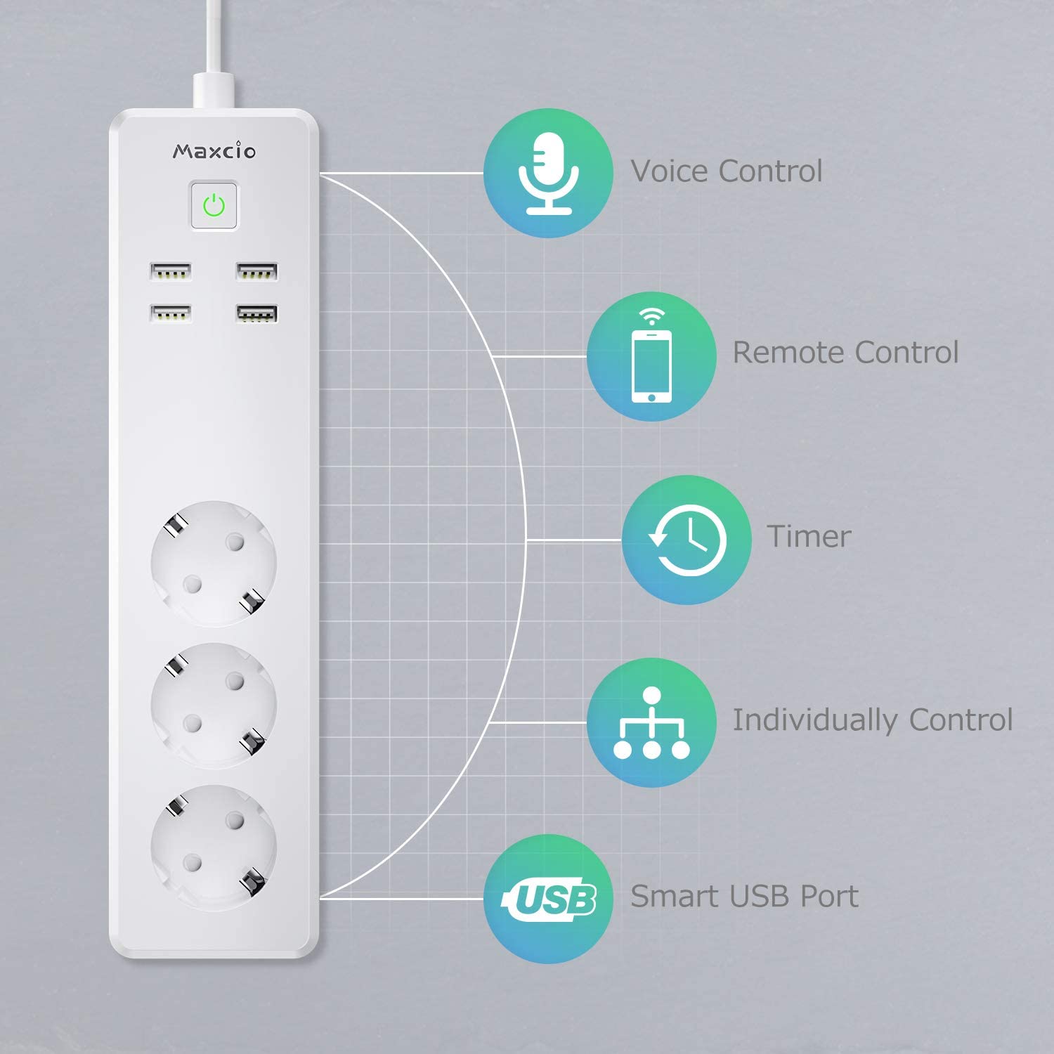 Regleta inteligente con WiFi, 3 enchufes AC y 4 puertos USB. Con la aplicación Smart Life puede controlar la mayoría de los aparatos eléctricos.