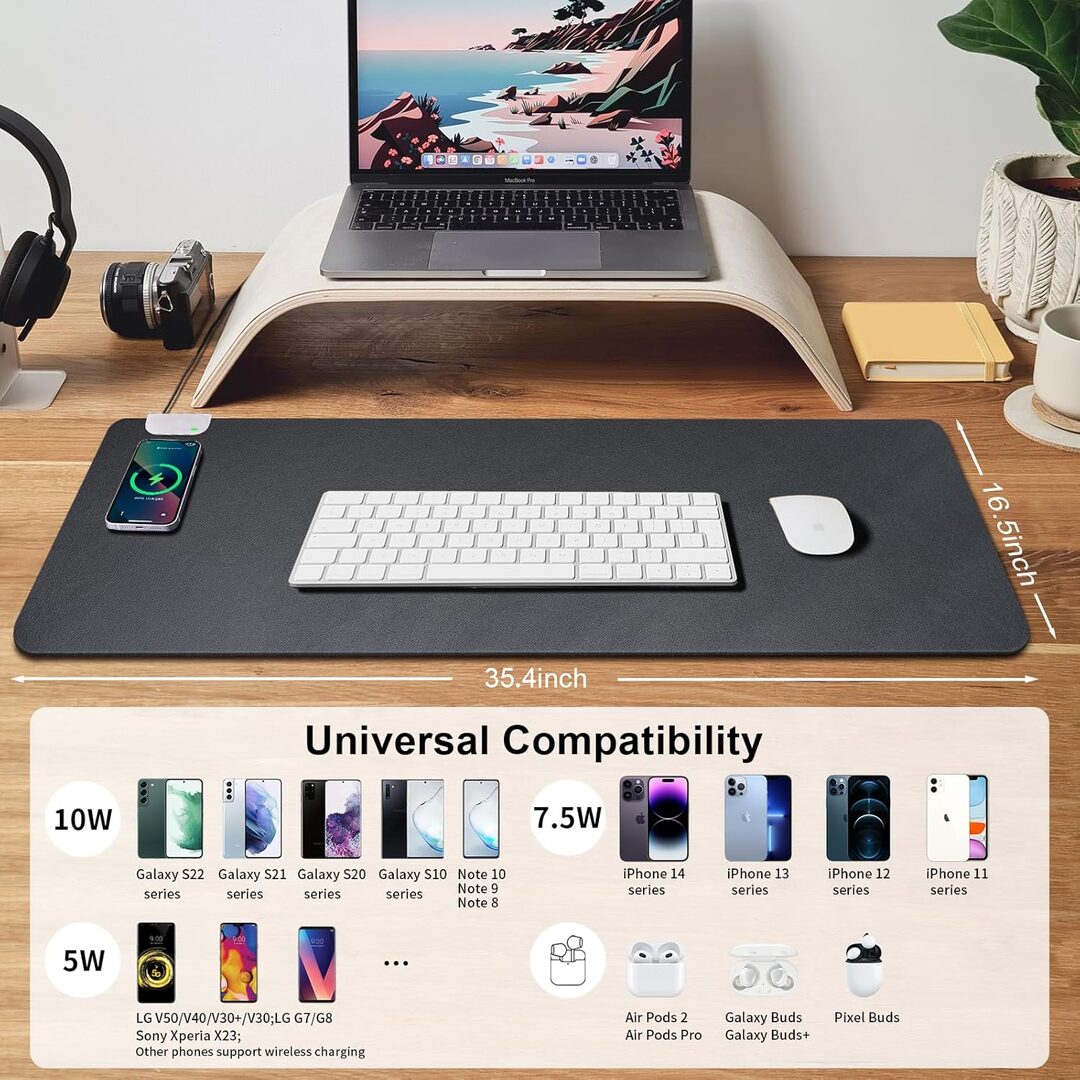 Versatilidad y comodidad: La almohadilla no solo es un cargador inalámbrico, sino también una alfombrilla de mouse de gran tamaño que permite un deslizamiento suave y preciso. Además, es ideal como almohadilla de escritura, almohadilla de conferencia o incluso para juegos.