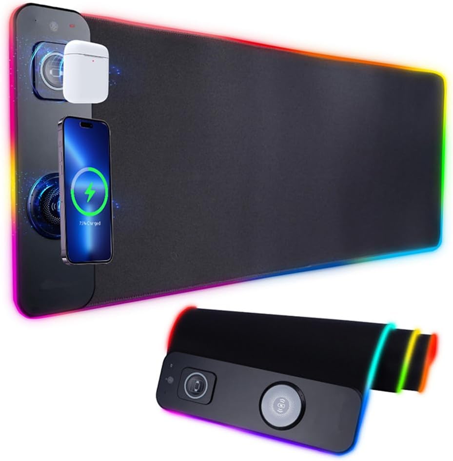 Estilo y funcionalidad: La combinación de carga inalámbrica y luces RGB la convierte en un accesorio imprescindible tanto para gamers como para profesionales que buscan un entorno de trabajo más dinámico.