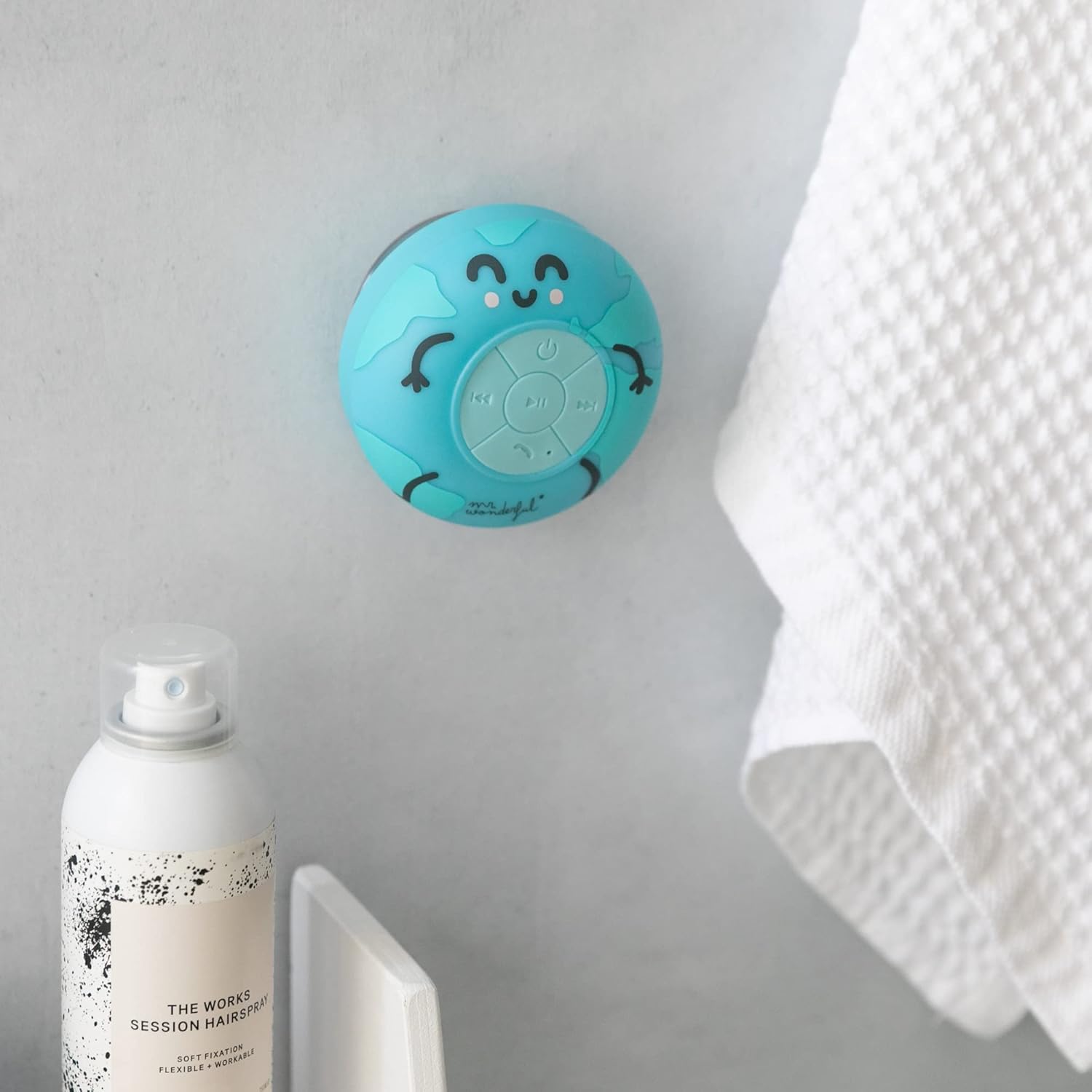 - Diseño exclusivo y original – Inspirado en la estética de Mr. Wonderful, este altavoz con temática Mapamundi no solo suena increíble, sino que también añade un toque de estilo y diversión a tu baño.