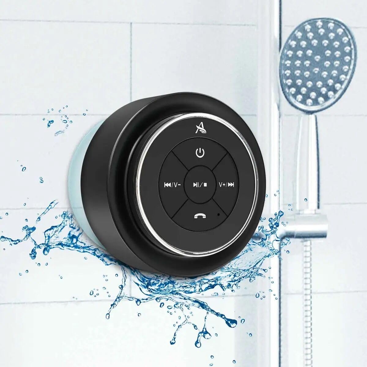 - Diseño portátil y resistente al agua (IPX7): Gracias a su certificación impermeable IPX7, podrás usarlo sin preocupaciones en la ducha, la piscina o en días lluviosos. Además, su diseño compacto con ventosa desmontable y correa permite fijarlo a superficies lisas o llevarlo cómodamente a cualquier parte.