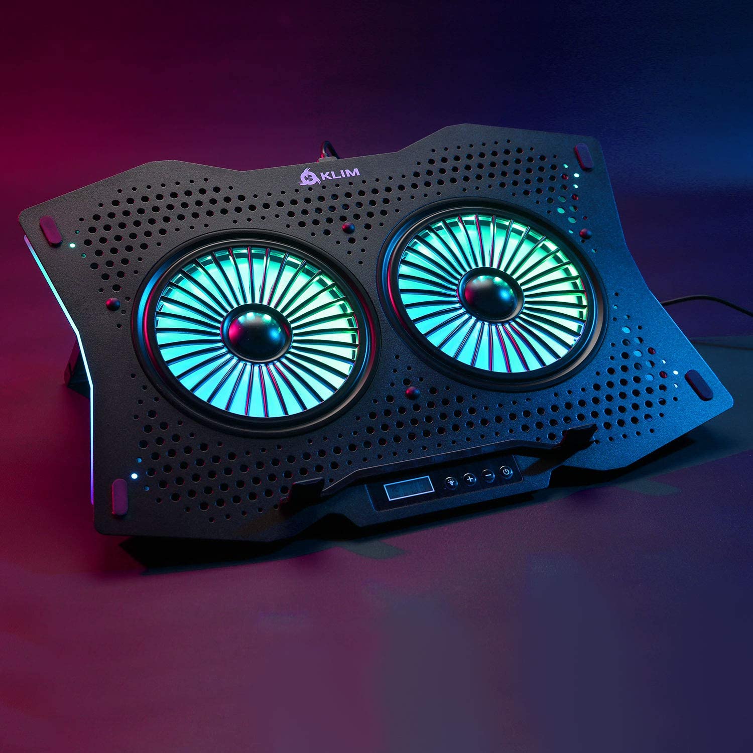Esta enorme base de enfriamiento es una excelente solución para que incluso los portátiles para juegos más grandes disipen el calor. Está equipado con dos ventiladores de 125 mm, que giran a una velocidad de 1200 RPM, creando un potente flujo de aire que puede bajar la temperatura en solo unos segundos. Gracias a los botones frontales se puede ajustar fácilmente la velocidad del ventilado, y además se pueden usar los botones RGB para seleccionar el efecto de luz de fondo deseado.