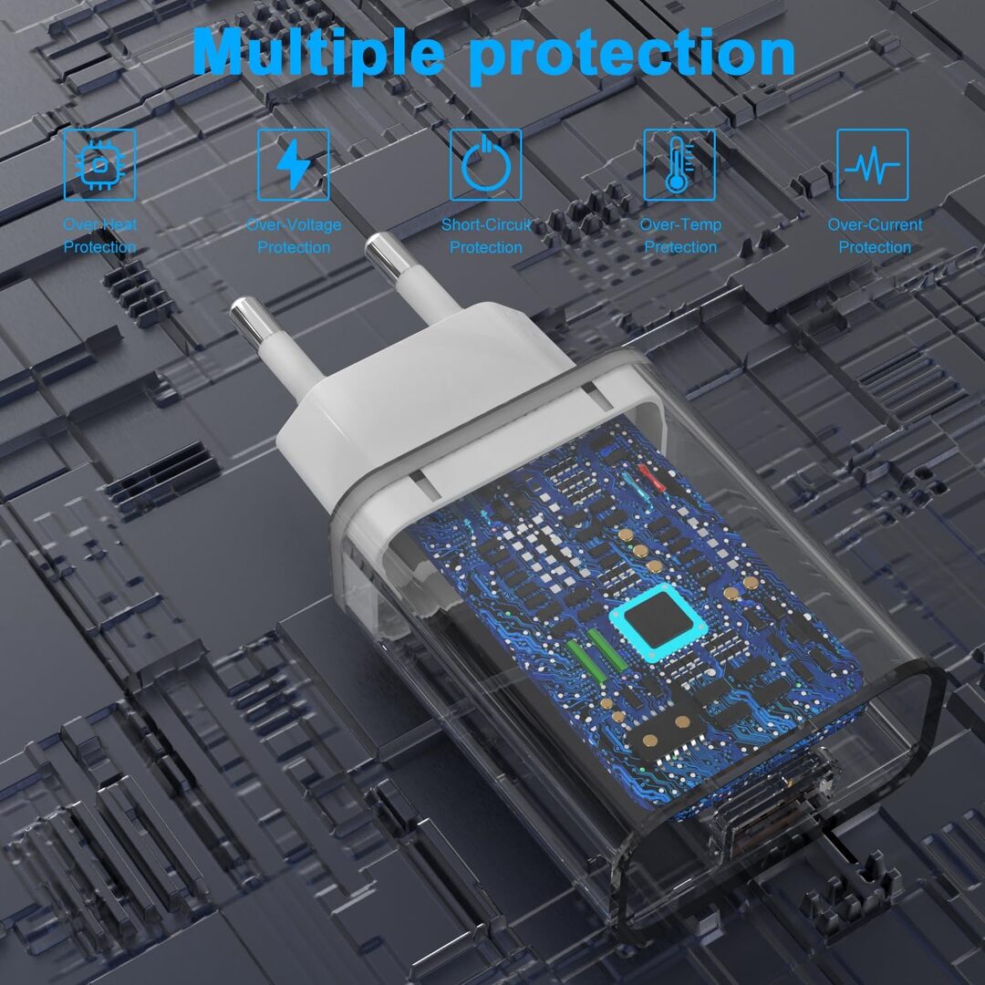 La seguridad también es protagonista. El sistema de protección inteligente integrado protege tus dispositivos frente a sobrecargas, sobrecalentamientos, cortocircuitos y picos de tensión, garantizando una carga estable y fiable incluso en usos prolongados. Esto lo convierte en una opción ideal tanto para el uso diario como para quienes buscan un cargador duradero y de confianza.