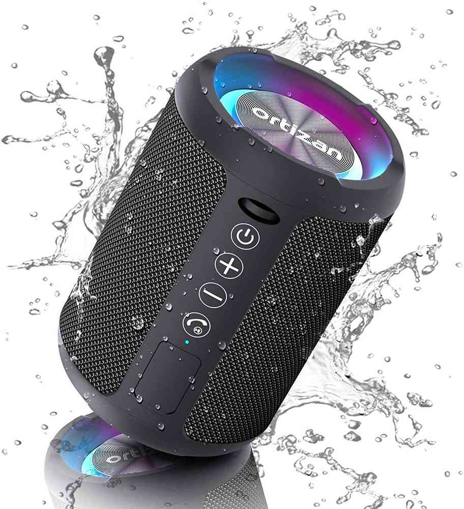 Este es uno de los mejores mini altavoces portátiles impermeables que encontrarás en el mercado, y que ofrece una potencia total de salida de 10W. Ofrece un sonido estéreo con una muy buena calidad y con unos graves profundos. Está diseñado para manejar frecuencias medias y agudas nítidas de forma única, sin tener ningún tipo de distorsión. Además, viene con luces LED de colores, las cuales irán cambiando al ritmo de tu música.