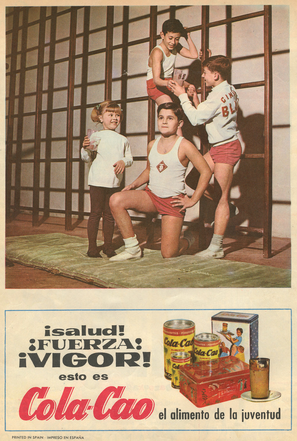 Gustavín, dibujado por Zalamea, 1960. En 1955, Cola-Cao patrocinó la serie radiofónica "Matilde, Perico y Periquín", que permanecerá en antena dieciséis años.