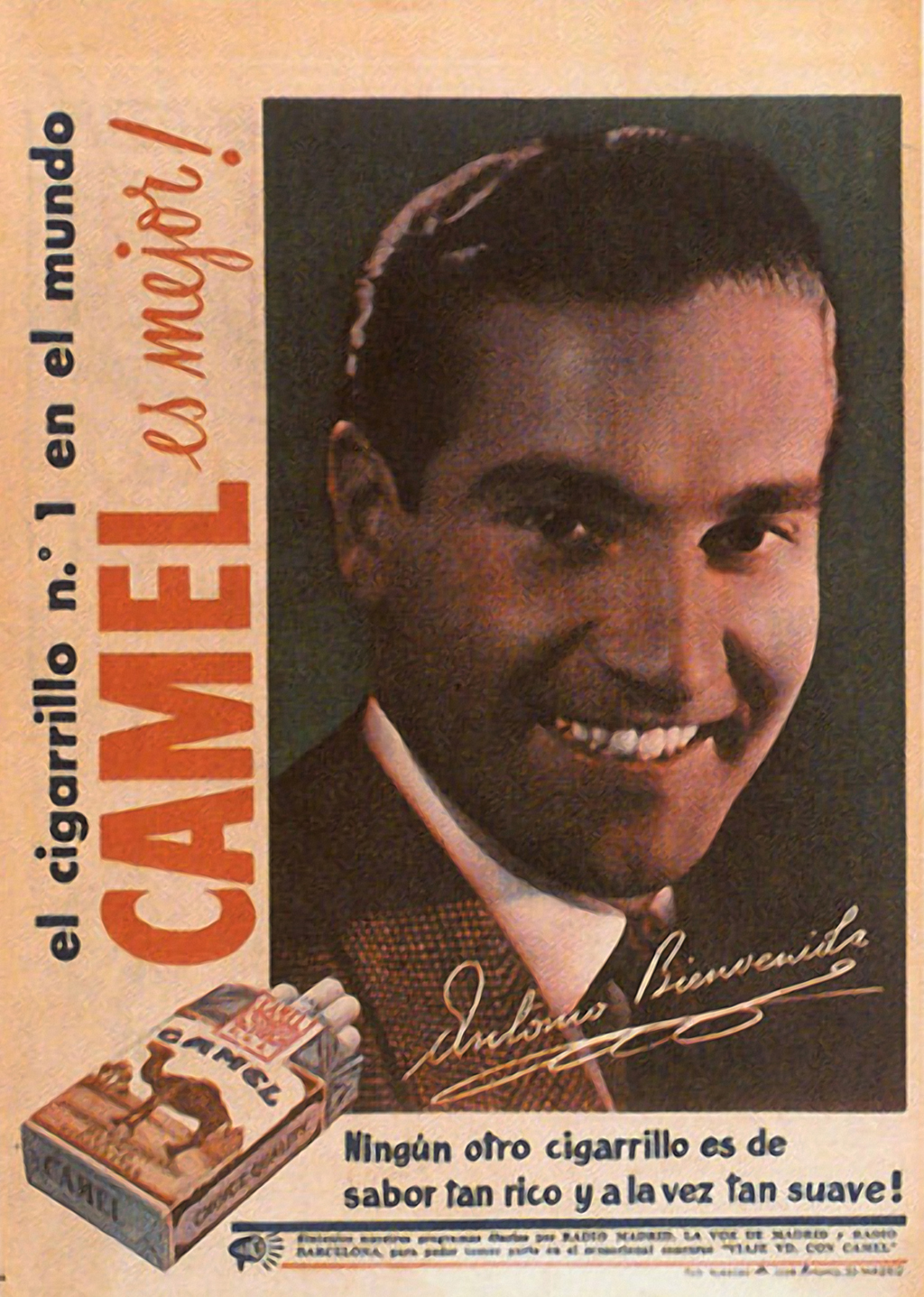 El maestro Antonio Bienvenida prestó su imagen para anunciar cigarrillos Camel (1955).