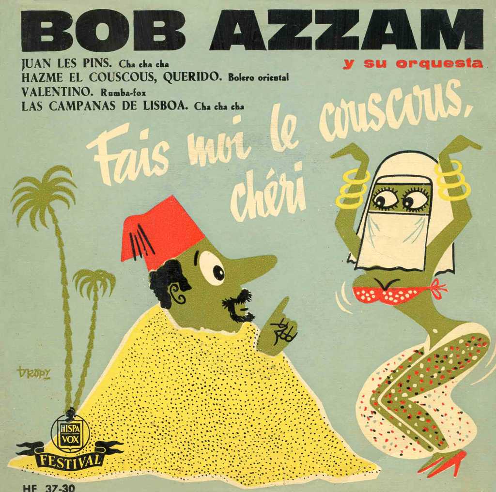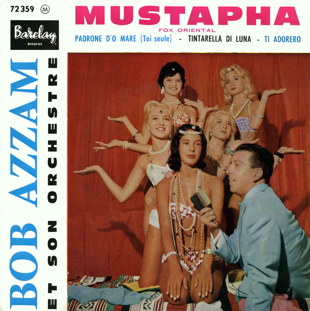 Versión francesa del disco de Bob Azzam. Se nota por las huríes en plan sicalíptico. En España era impensable una portada así, con esas cinco bellezas en bikini. (1960)