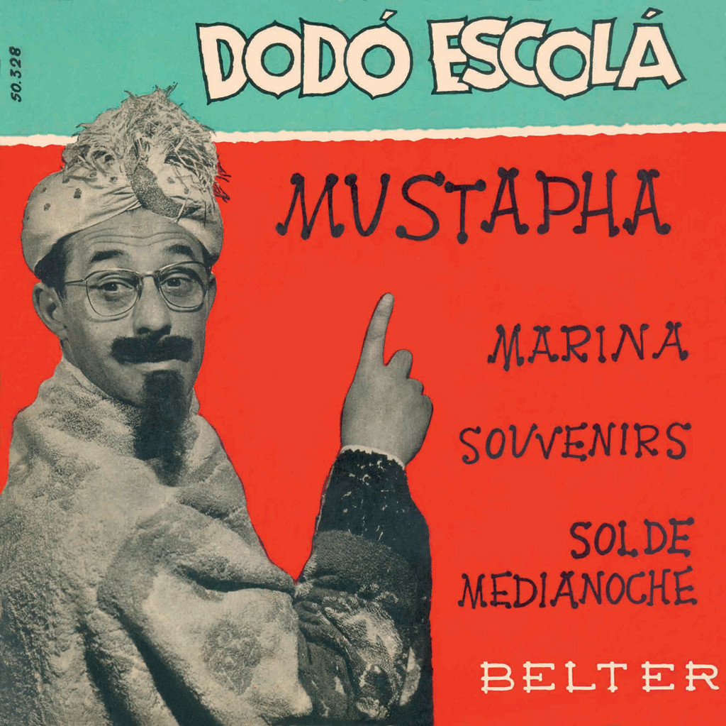 Dodó Escolá era un cantante catalán megafriqui que se disfrazaba de todo en las portadas de sus discos. Fue famoso por "¿Qué pasa en el Congo?": "que a blanco que pillan lo hacen mondongo". Su "Mustapha" es apoteósico. (1960)