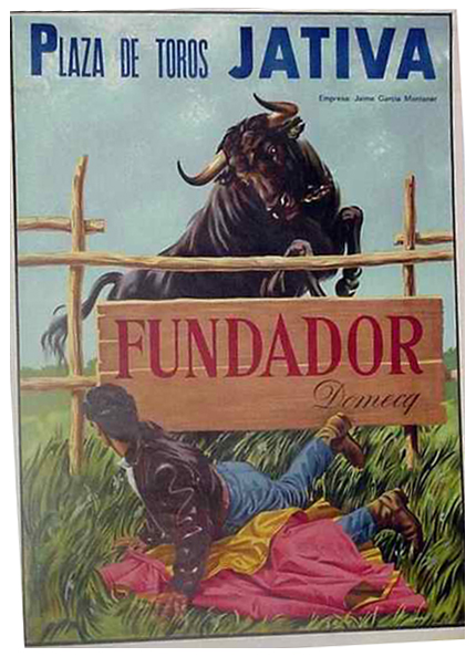 El toro bravo comenzó a relacionarse con los brandis desde que la firma Osborne encargara a la agencia Sahuquillo una campaña publicitaria para promocionar el coñac Veterano. El famoso toro de Osborne fue diseñado por Manolo Prieto en 1948 y desde entonces corona las lomas de España. Otras marcas también lo imitaron sin fortuna.