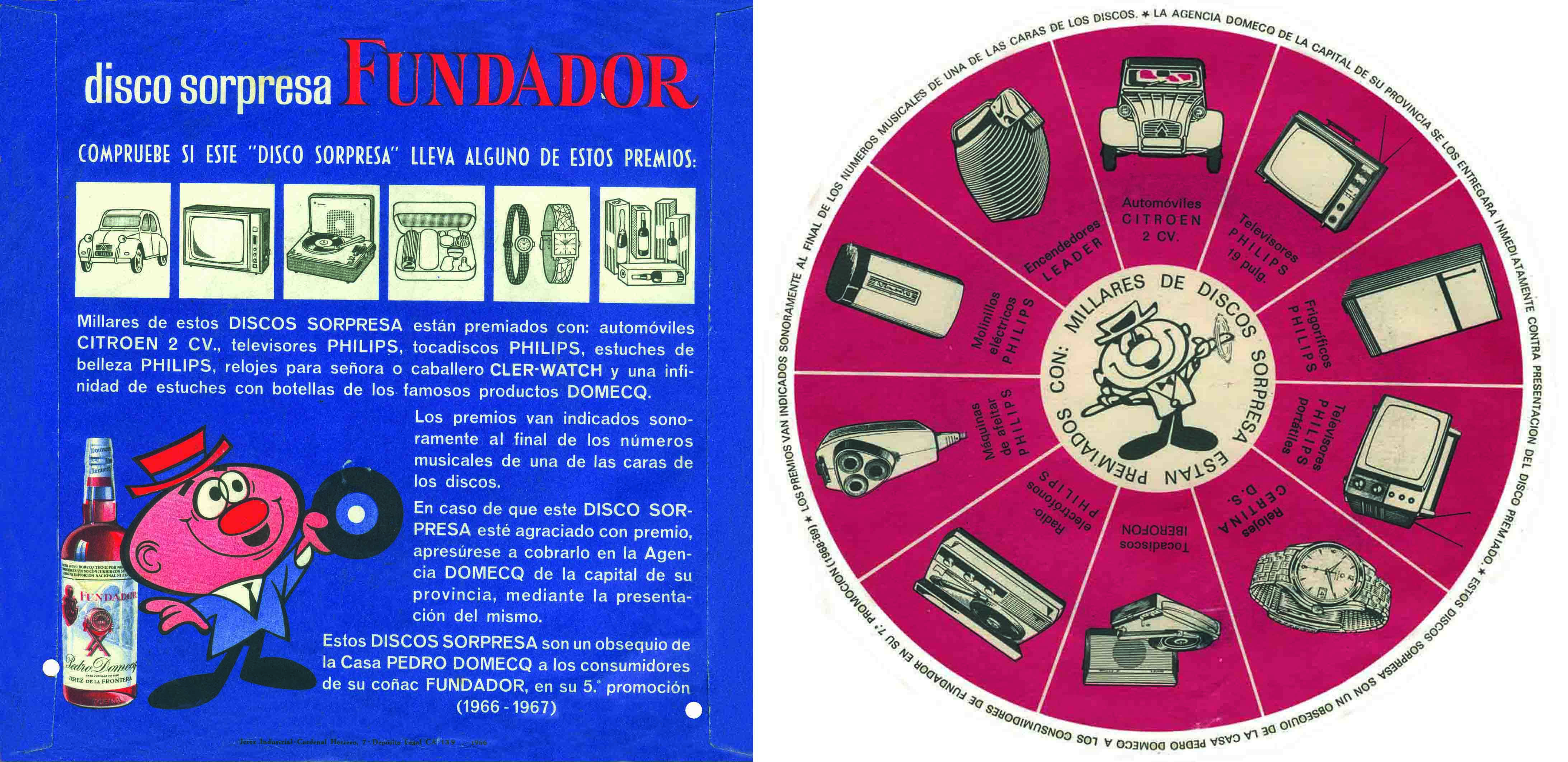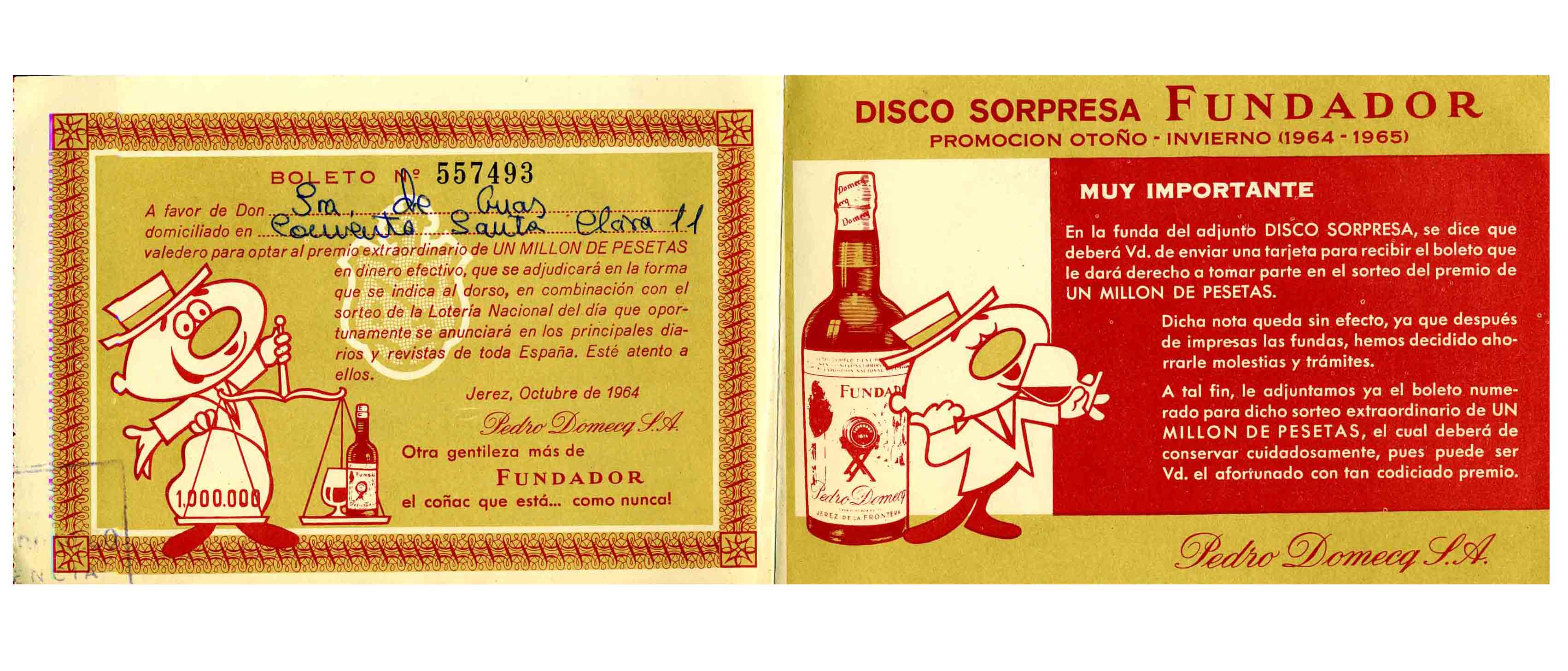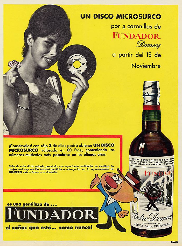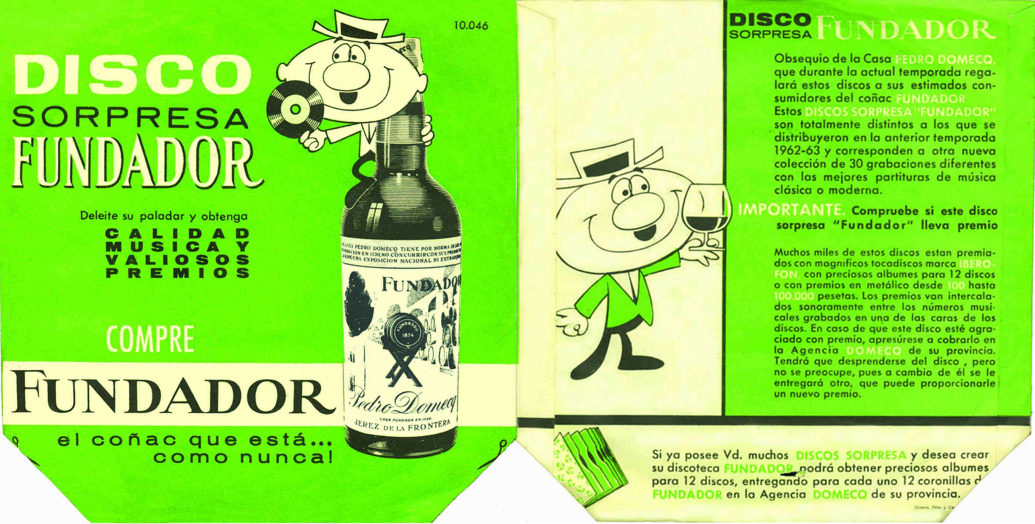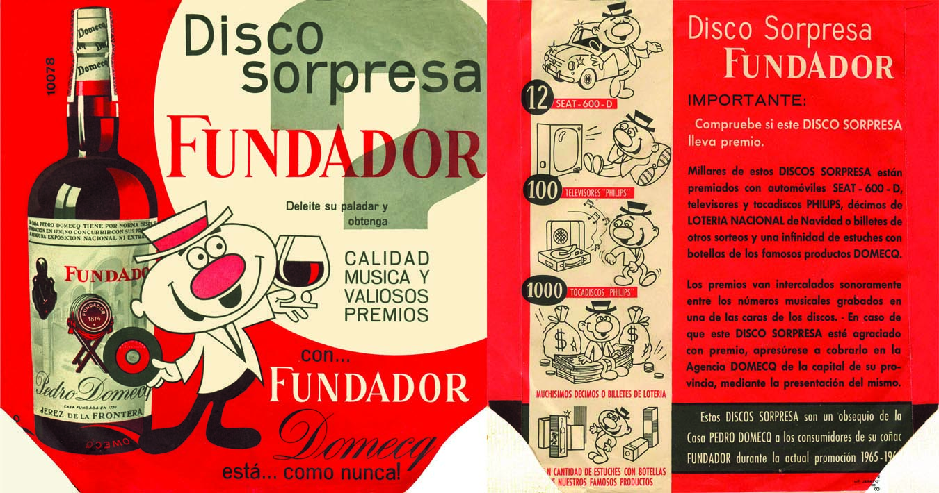 La originalidad de la campaña ideada para promocionar el coñac Fundador fue el "disco sorpresa". Se obtenía cambiando cinco coronillas de las botellas por un disco. Al final del disco se anunciaba el premio que podía ganar el consumidor.