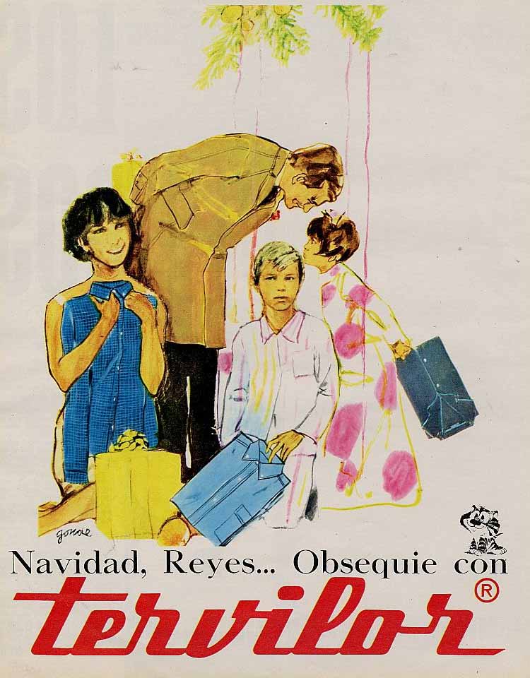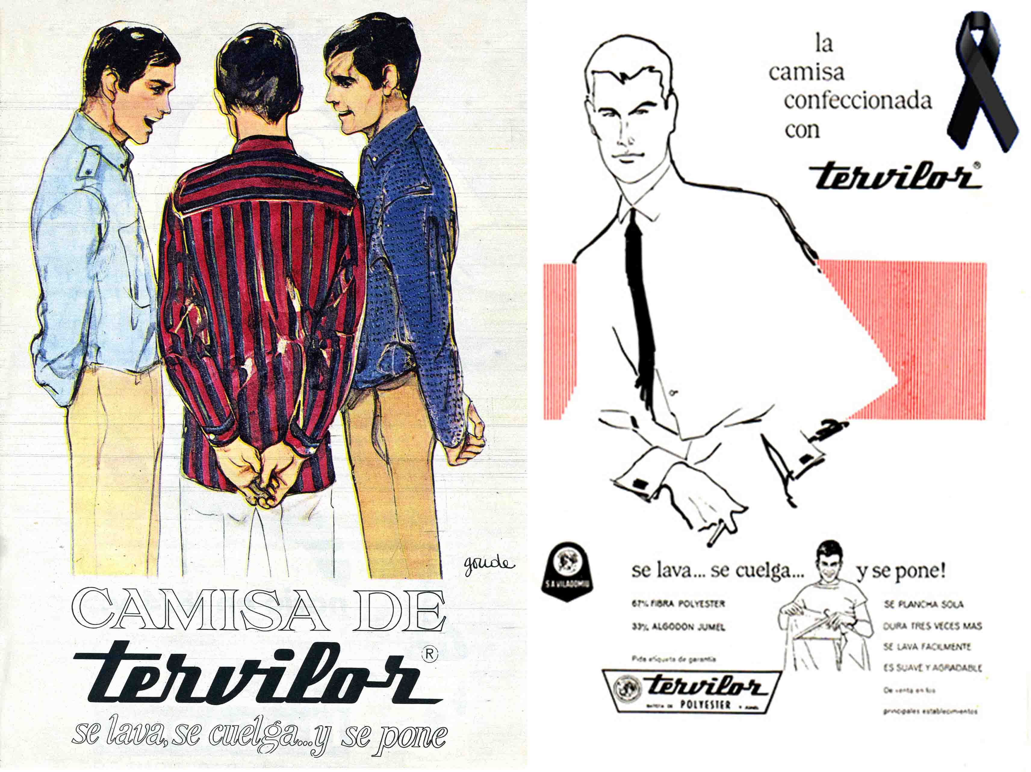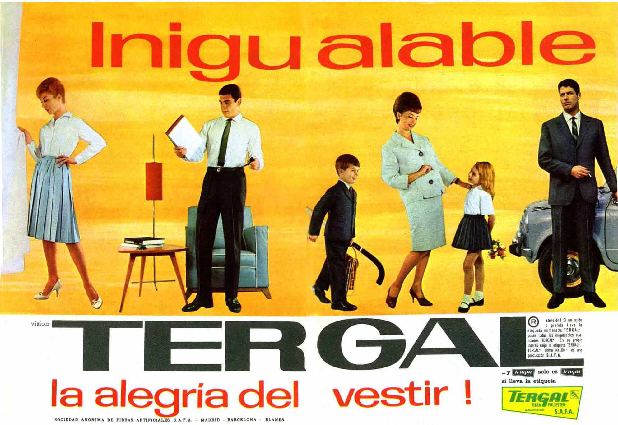 Tergal llega a España en el año 62. Las fibras artificiales sustituyeron a las naturales, convirtiendo las prendas en inarrugables.