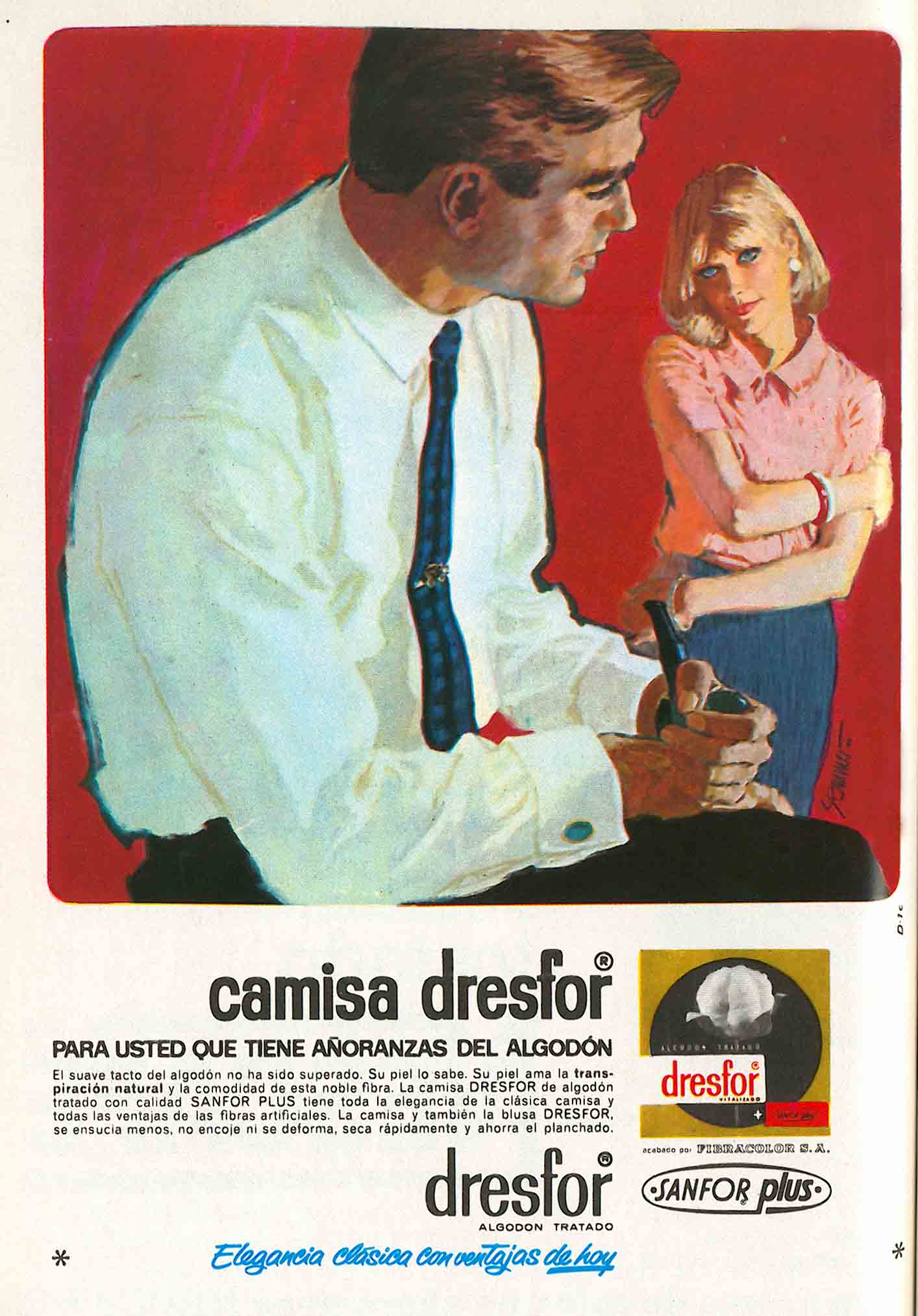 La fibra de algodón tratada con Desfror daba a las camisas y blusas un aspecto tradicional. No había necesidad de plancharlas. Además, no se ensuciaban ni se encogían ni se deformaban.