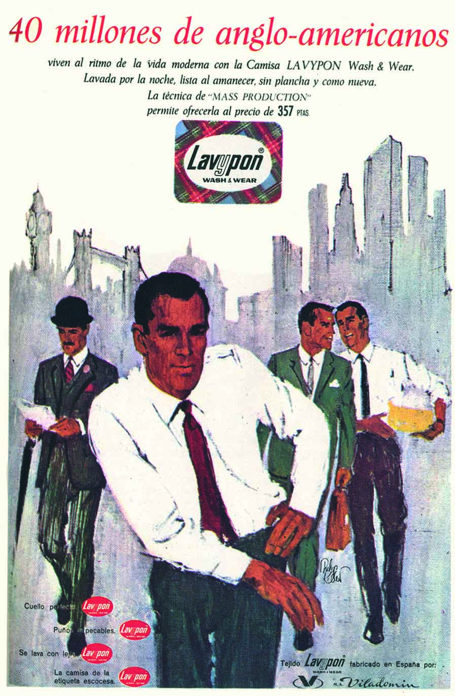 Además de ser fácil de lavar, seca en una noche. Ese fue el nombre de las camisas Lavipón, traducción del Wash & Wear anglosajón. El dibujo es de Philip Kelten.