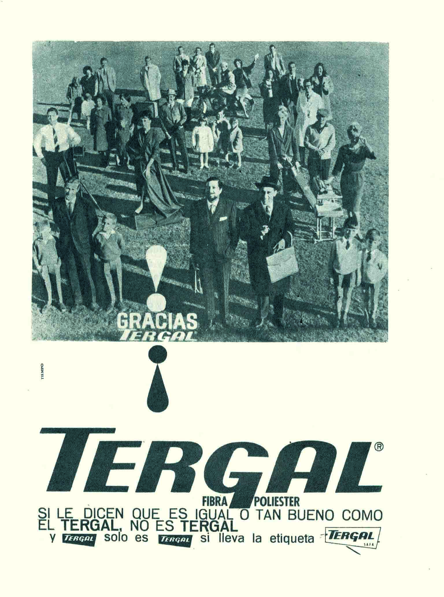 Tergal es una fibra sintética creada en Francia a partir del poliéster, en 1954, utilizada para confeccionar tejidos, mezclado con lanas y sedas, y también para fabricar botellas transparentes. El nombre procede de la sílaba Ter de PoliesTER y Gal, de galo. La rubia del anuncio es Teresa Gimpera.