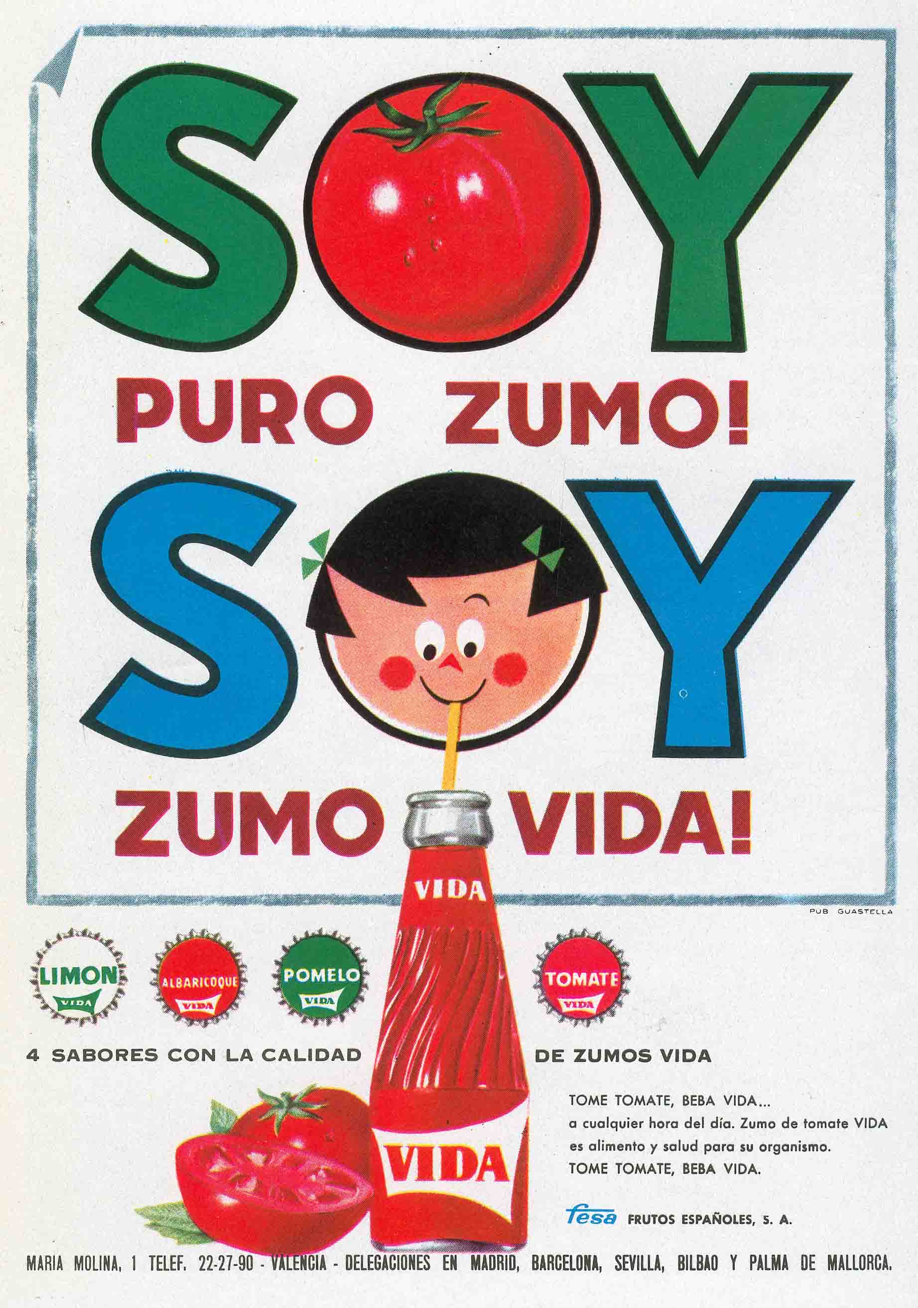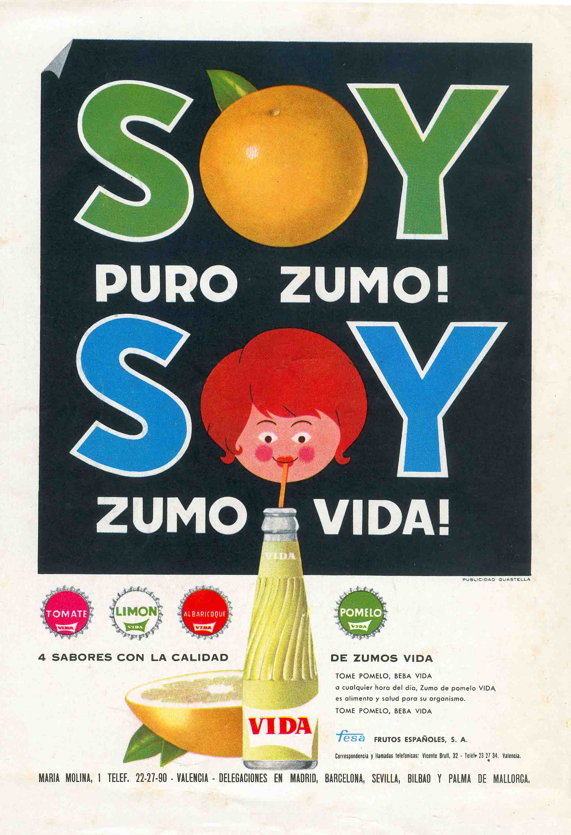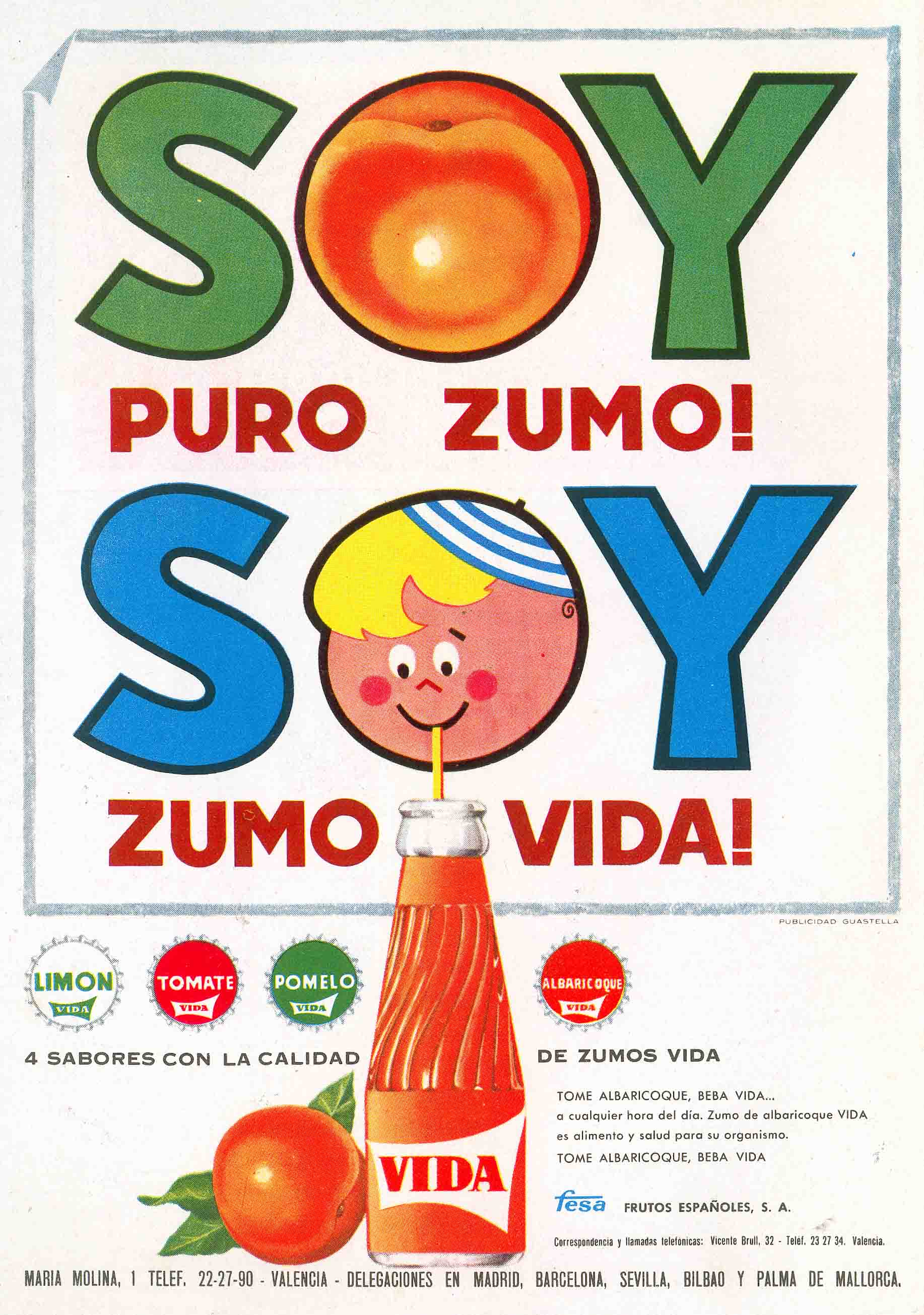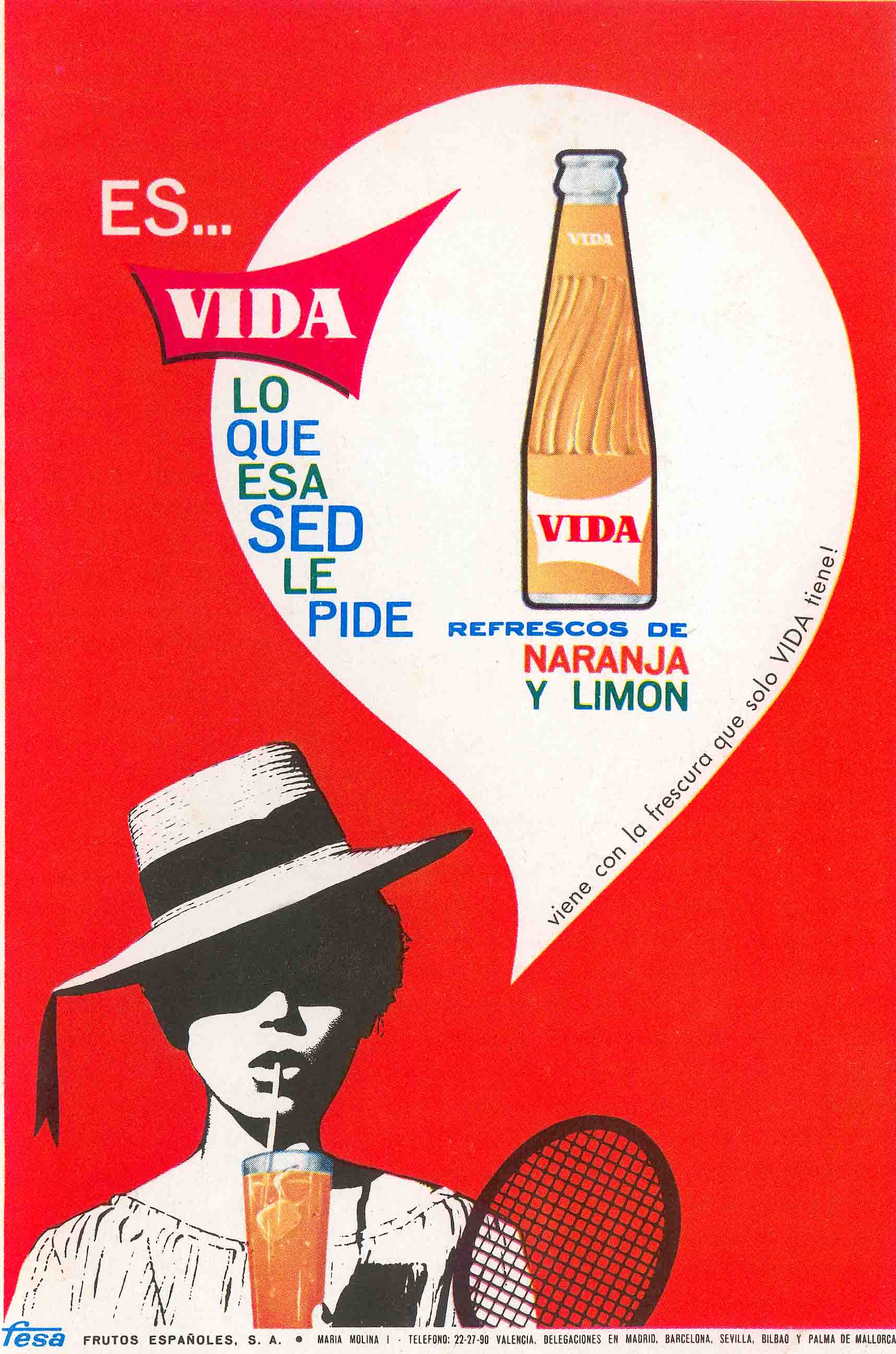 A finales de los años 50, la publicidad de zumos Vida iba dirigida a un consumidor familiar, orientada a la salud de adultos y niños. El cambio publicitario se opera cuando los refrescos extranjeros comienzan a invadir bares y colmados, y zumos Vida contrata a una agencia publicitaria para modernizar sus anuncios.