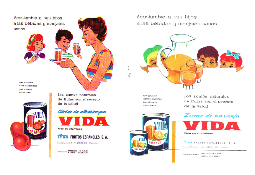 En los años 50 comienza en Carcagente (Valencia) la fabricación de zumos Vida, coincidiendo con el auge exportador de la naranja valenciana en Europa. (Ver vídeo de "Fantasía Tico-Tico", de Estudios Moro)