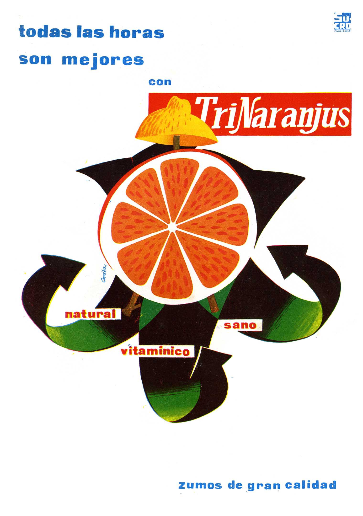 Este anuncio de zumos Vida, de 1962, se adelanta estéticamente a la moda de utilizar los globos de los tebeos en publicidad y la solarización de la imagen, que se pondría de moda años después, en especial en la publicidad de discotecas como Penélope.