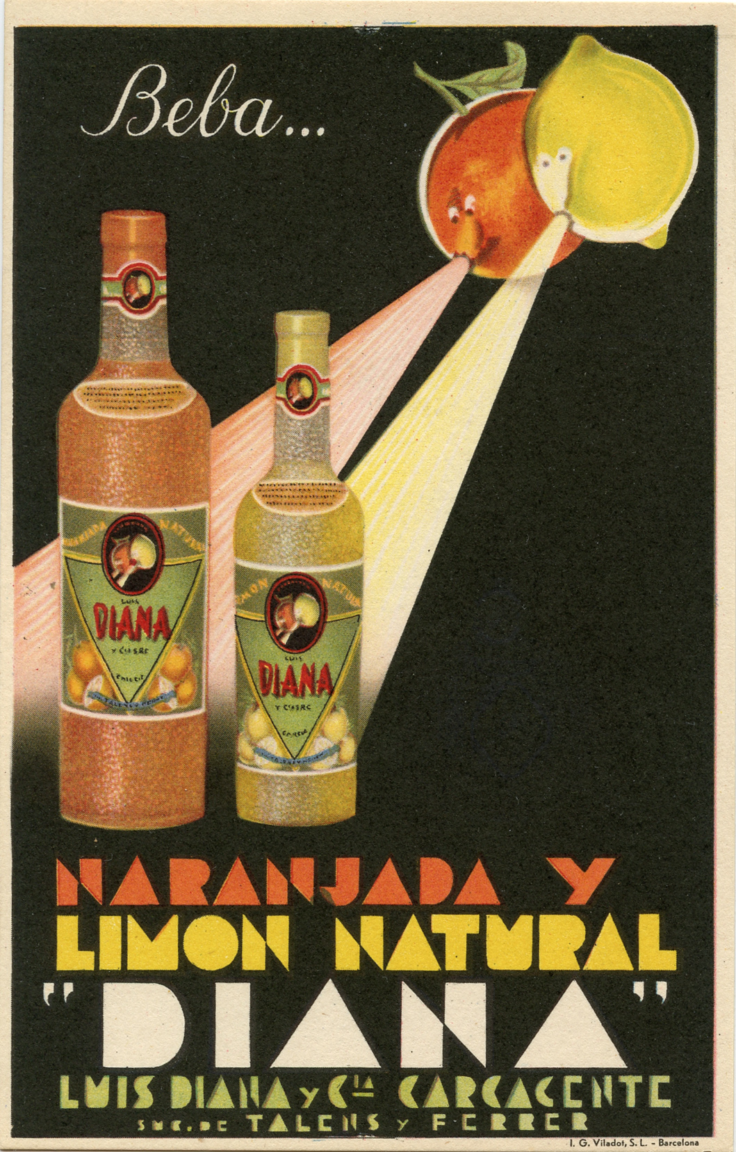 Los zumos naturales Diana también se fabricaban desde los años 30 en Carcagente. Se especializaron en concentrados de distintas frutas para diluirlos en nueve partes de agua.