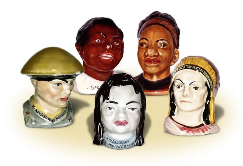 Aquí están las huchas del Domund más populares: el chinito, el negrito, el indio. En la foto aparecen dos nativos suramericanos que resultan menos conocidos.