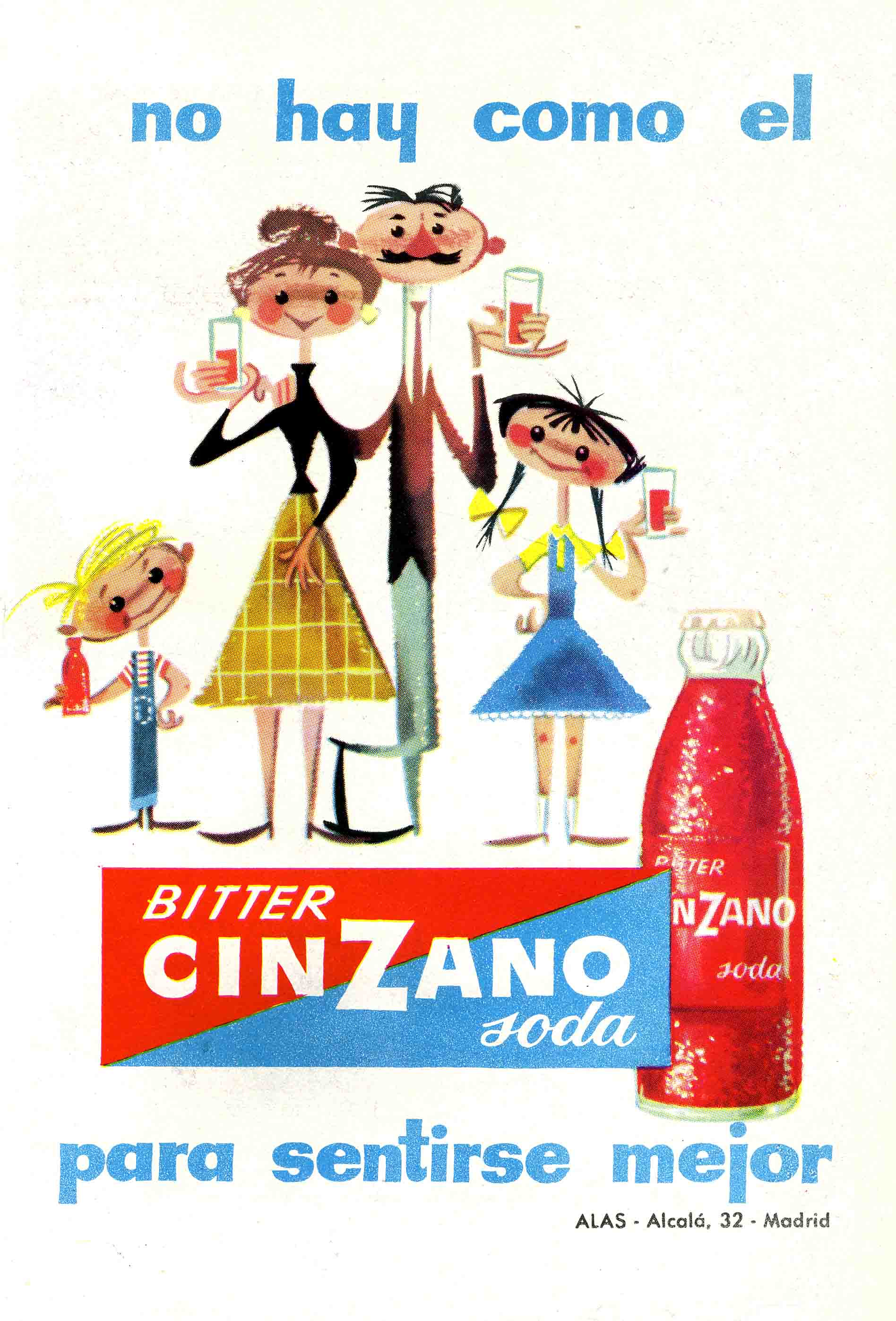 Para finalizar, nada como un dibujo de José Luis Moro realizado la publicidad de Bitter Cinzano soda, un aperitivo muy popular en los años 50 y 60, hoy un tanto arrumbado por la moda. Lo curioso de este anuncio es que lo bebían también los niños. Se los ve súpercontentos.